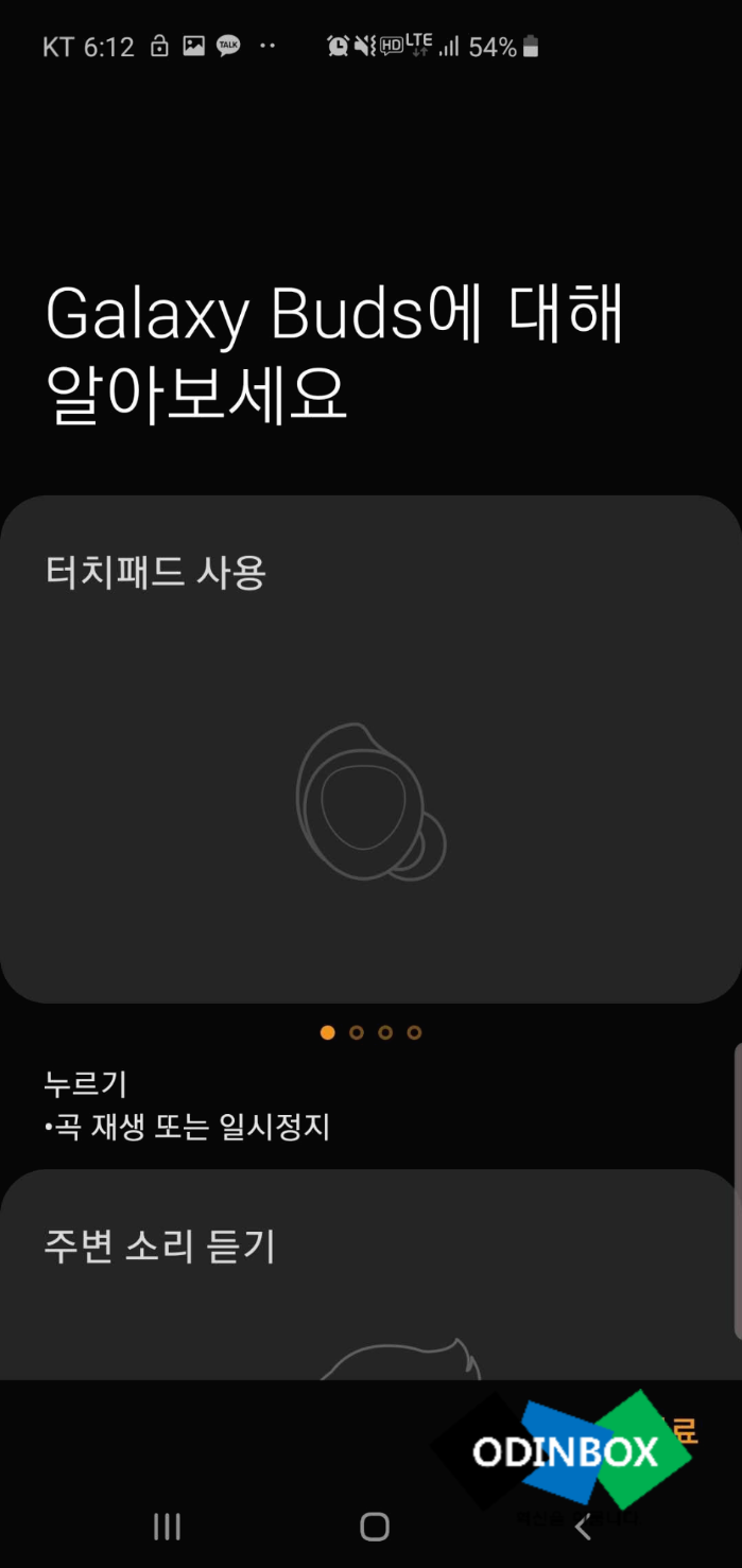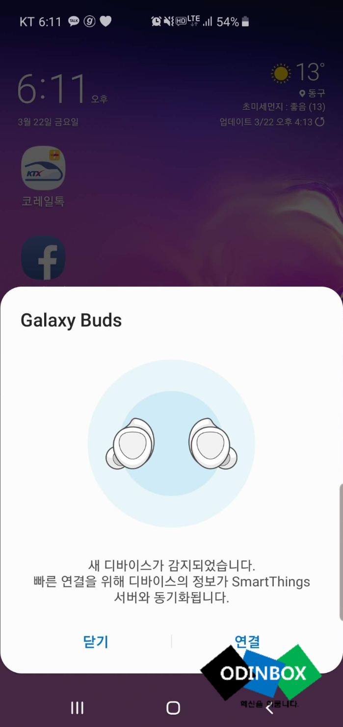 갤럭시버즈를 열면, S10에 저런 알람이 뜨면서 쉽게 연결을 할 수 있게 해줍니다. 설정을 다하고 연결을 끝낸 뒤 음악을 틀어보았는데