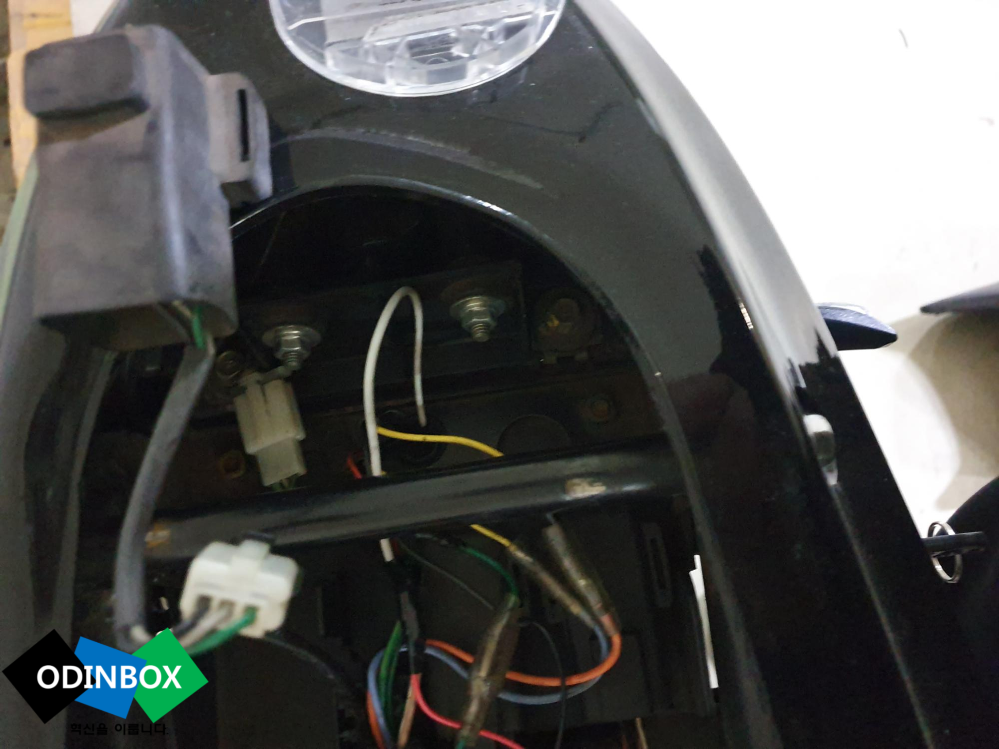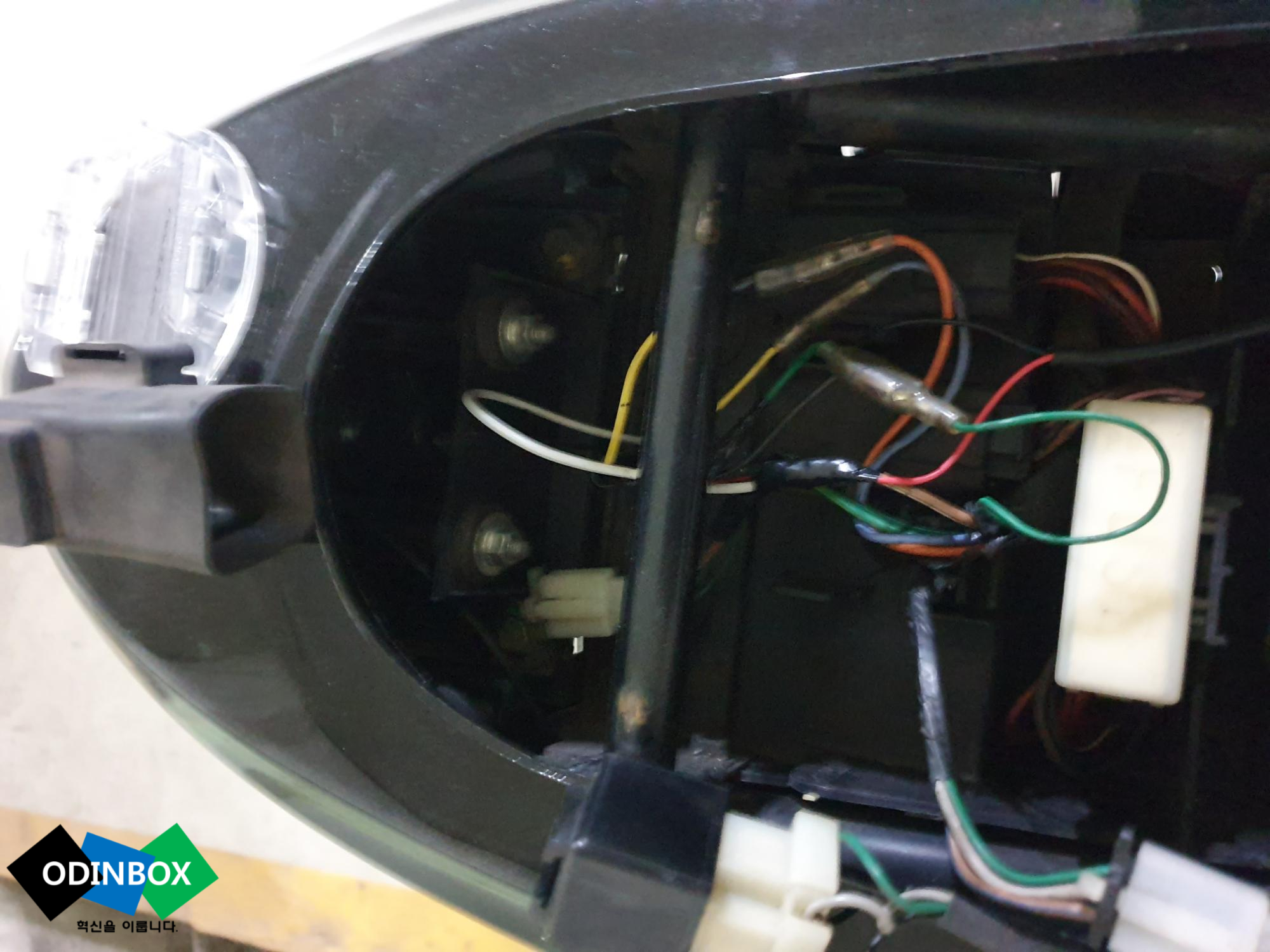 열고 난 뒤의 모습입니다, 너무 빈약해보이죠 ? 저기 있는 알록달록한 전선은 방향지시등 선들입니다.