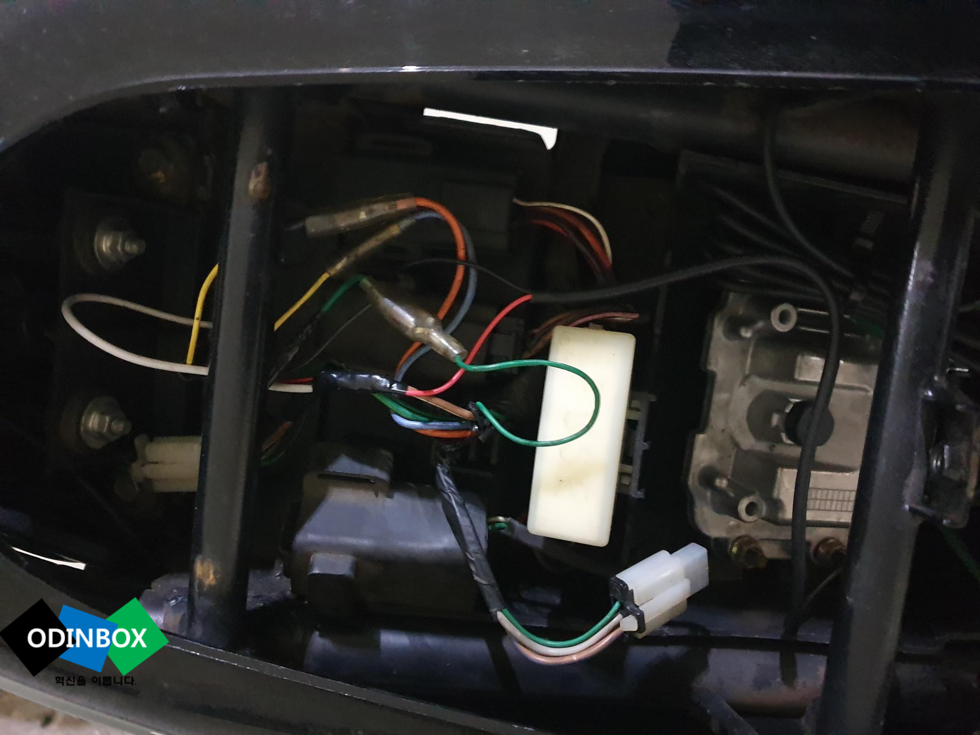 주문 물건이 도착하고 지하 주차장으로 내려가 가지고 있던 간단한 공구를 들고 바이크를 분해합니다. 분해도 대단하나게 아니라 시트열고 커버열고 8mm 볼트풀고 뒷시트 열면 됩니다. 매우 간단한 구조입니다.