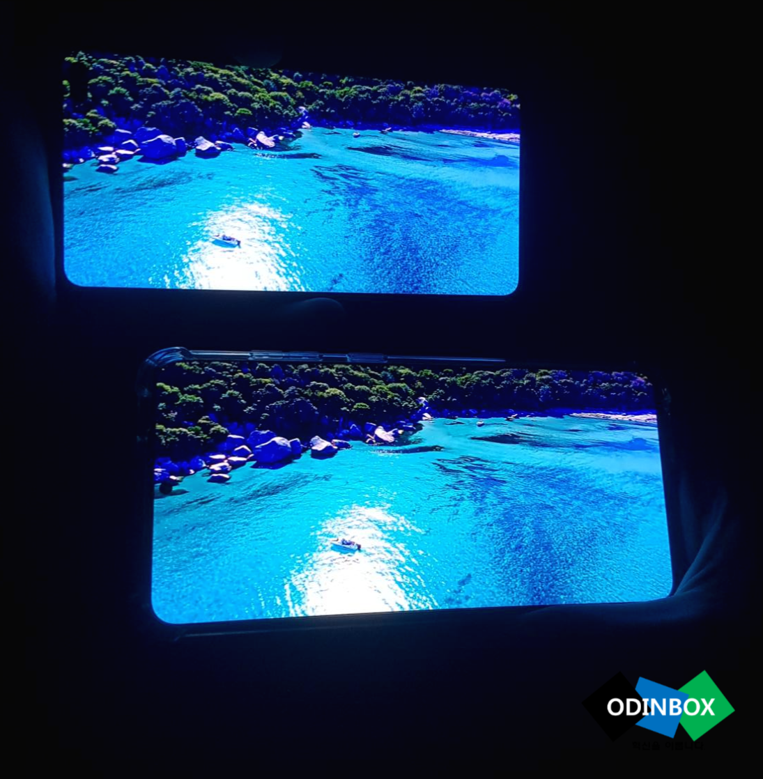 유튜브로 4K 동영상을 재생하고 밝기도 똑같이 최대 밝기로 하고 촬영했습니다. 확실히 사진상으론 큰 차이는 없었지만 실제로 보면 차이가 많이 났습니다. 위의 기기는 S10+, 밑은 S20+입니다.