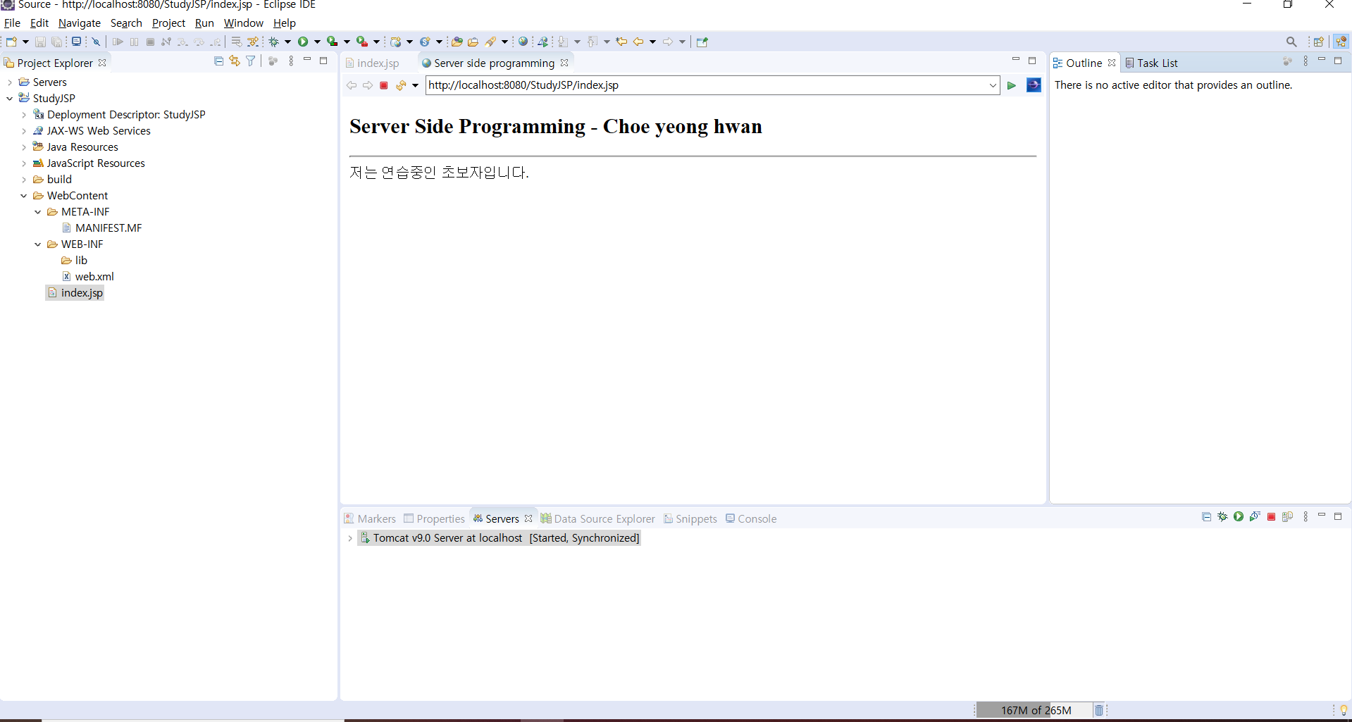 이클립스를 실행한 후 서버 설정 후 작동이 잘되는지 확인했습니다.