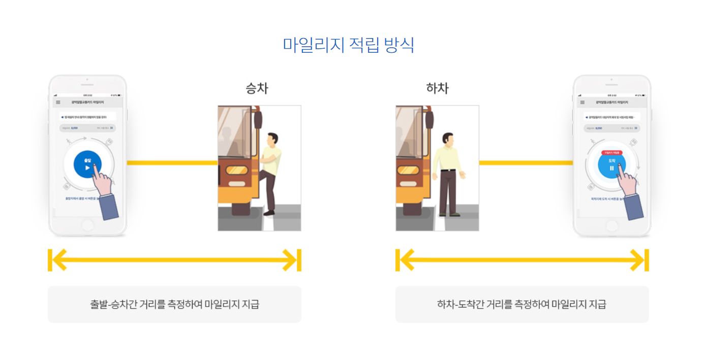 마일리지는 일정 횟수 그러닌깐 15회 이상 사용을 해야 마일리지가 적립이 됩니다. 그리고, 여기서 더욱 중요한 사실은 광역교통카드만 사용하고 마일리지 앱을 사용하지않는다면 전혀 마일리지나 혜택을 볼 수 없으니 이점 참고 하시면 됩니다.