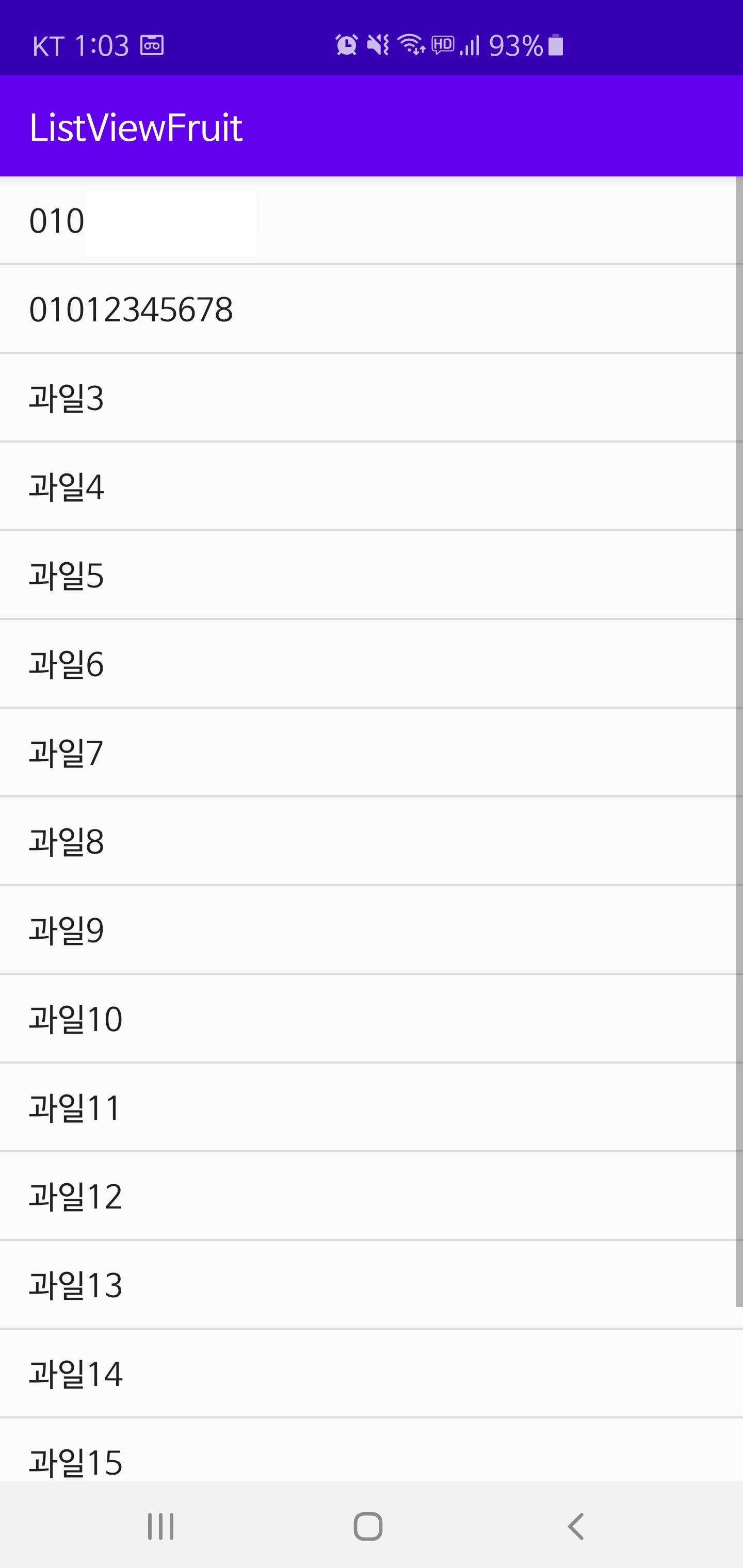 String[] values = {"0104567891","01012345678","과일3","과일4","과일5","과일6","과일7","과일8","과일9","과일10","과일11","과일12","과일13","과일14","과일15","과일16","과일17"};