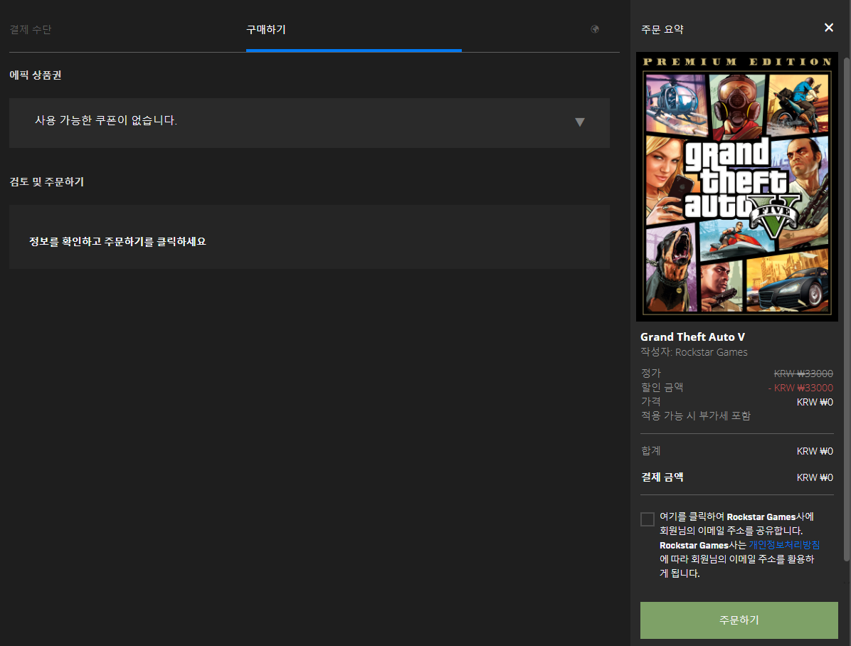먼저, 에픽게임즈 홈페이지[링크]를 접속합니다, 상단에 보시면, 로그인 버튼이 있습니다. (에픽게임즈 계정이 소유하고 계신다면, 이 부분은 넘어가도 됩니다.) 로그인 버튼을 누르면, 하단에 보시면 가입이라는 버튼을 누르고 동의를 진행하시고 이메일과 이름등 정보를 입력 후 계속 버튼을 누릅니다. 그리고, 가입할 때 적으셨던 이메일로 인증 메일을 확인 후 보안 코드 입력화면에 입력하시고 확인버튼을 누르시면 정상적으로 에픽게임즈의 회원으로 가입이 되셨습니다. 이제 [링크]로 들어가시면, [받기]를 누르고 2단계 인증 활성화를 들어갑니다. [이메일 인증, SMS 인증, 앱 인증] 세가지를 선택 할 수 있는데 저는 이메일 인증을 통해 2단계 인증을 활성화하였습니다. 위 링크 다시 접속 후 받기를 누르시면 정상적으로 다운로드 할 수 있습니다. 그리고 에픽게임즈 런처를 다운로드 후 설치하시면 GTA5를 정상적으로 플레이 하실 수 있습니다.