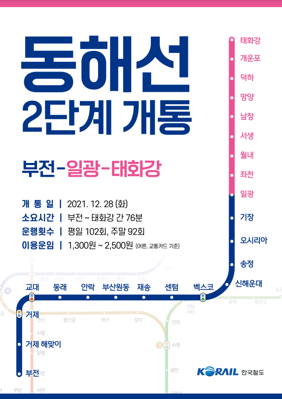 동해남부선,동해선,복선전철,부전,일광,태화강,단선철도,전동차,무궁화호EMU250,기차,시간표,새마을호,무궁화호,조기개통,KTX이음,전철화공사,전동차