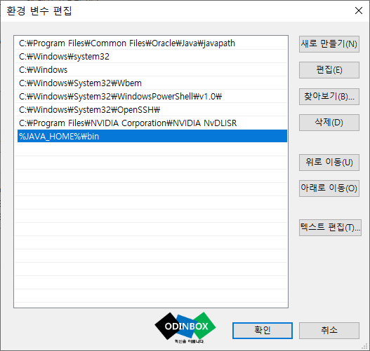 그리고 마지막으로 시스템 변수 Path부분을 더블 클릭 후 아래와 같이 맨 밑에 한줄 추가하고 확인을 누르게 되면 환경 변수 설정은 끝나게 됩니다.