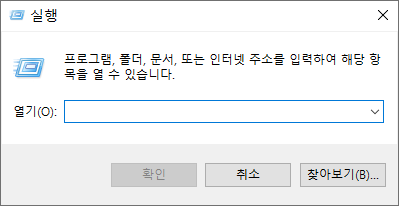 명령 프롬프트를 실행합니다. 실행창에 cmd 입력 후 확인을 누르거나 윈도우키 + R을 눌러 cmd를 입력하여 명령프롬프트를 실행합니다.