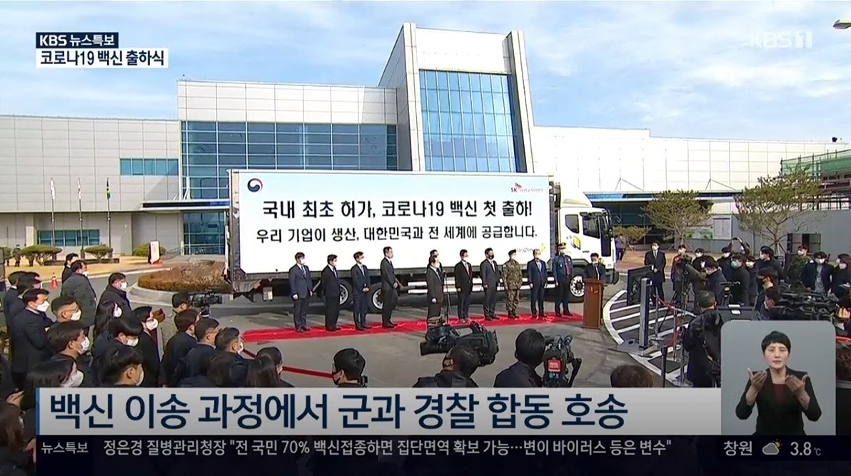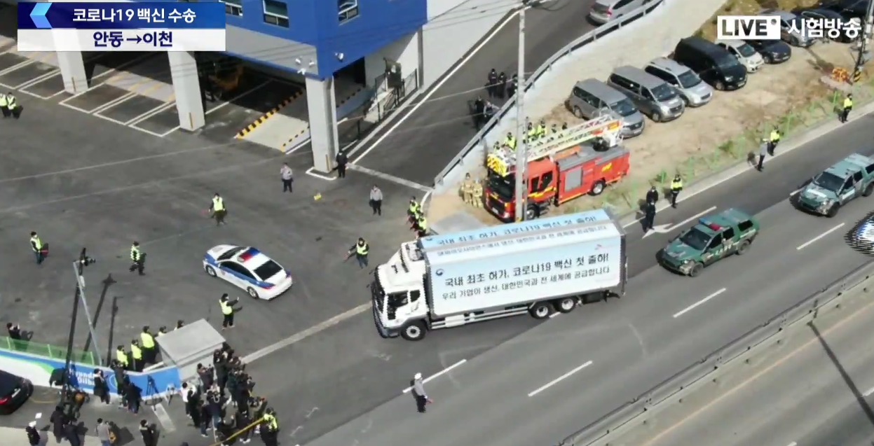 금일(02월 24일) 아스트라제네카(Astrazeneca) 위탁생산 백신 물량이 안동에서 이천 물류센터로 수송되었습니다. 다행히 큰 문제없이 수송이 완료가 되었습니다 그 현장 모습이 생중계되었습니다 저도 그 모습을 지켜보았습니다. 이번 출하를 위해 많은 분들이 부단한 노력을 했습니다. 그들의 노고에 항상 감사의 말씀드립니다.