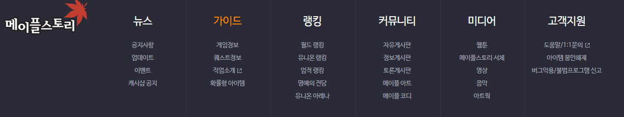 메이플스토리 공식 홈페이지 가이드 메뉴에 확률형 아이템 메뉴가 추가되었다. 해당 메뉴를 누르면 확률형 아이템의 정보들이 나오게 된다.