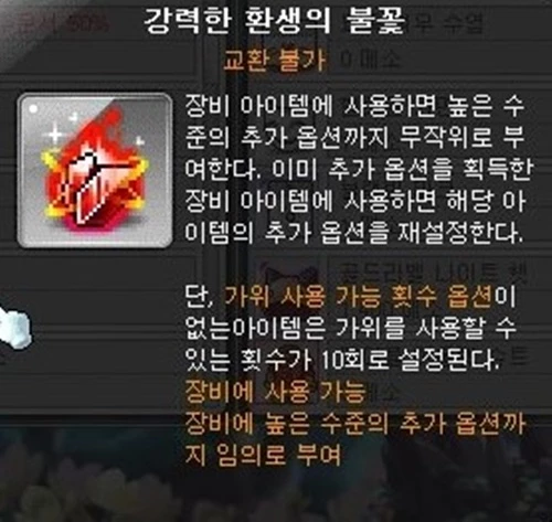 | 강력한 환생의 불꽃 | 교환 가능 | 2차 환생의 불꽃 B 포인트 |