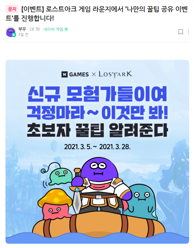 네이버 게임에선 신규 모험가들을 위한 이벤트[#]를 진행을 3월 5일부터 3월 28일까지 진행을 한다는 이벤트 글이 올라왔다 3월 5일은 메이플에서 확률형 관련하여 공지를 올린다는 날이었는데 우연? 계획?으로 난민들을 더 모이게 될 듯한 분위기가 되었다.
