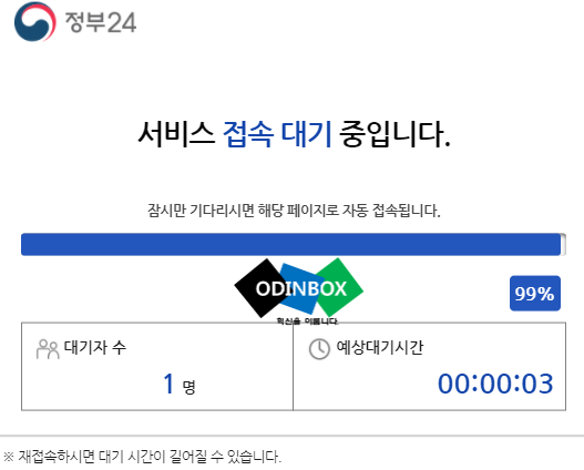 28일 접속을 하려니 접속 대기 1,123명이 접속 대기 중이라 기다림의 시간이 많이 걸렸습니다 그래도 서비스가 궁금하다 보니 기다렸습니다 예상 대기시간보다 10분 일찍 30분 만에 접속을 할 수 있었습니다.