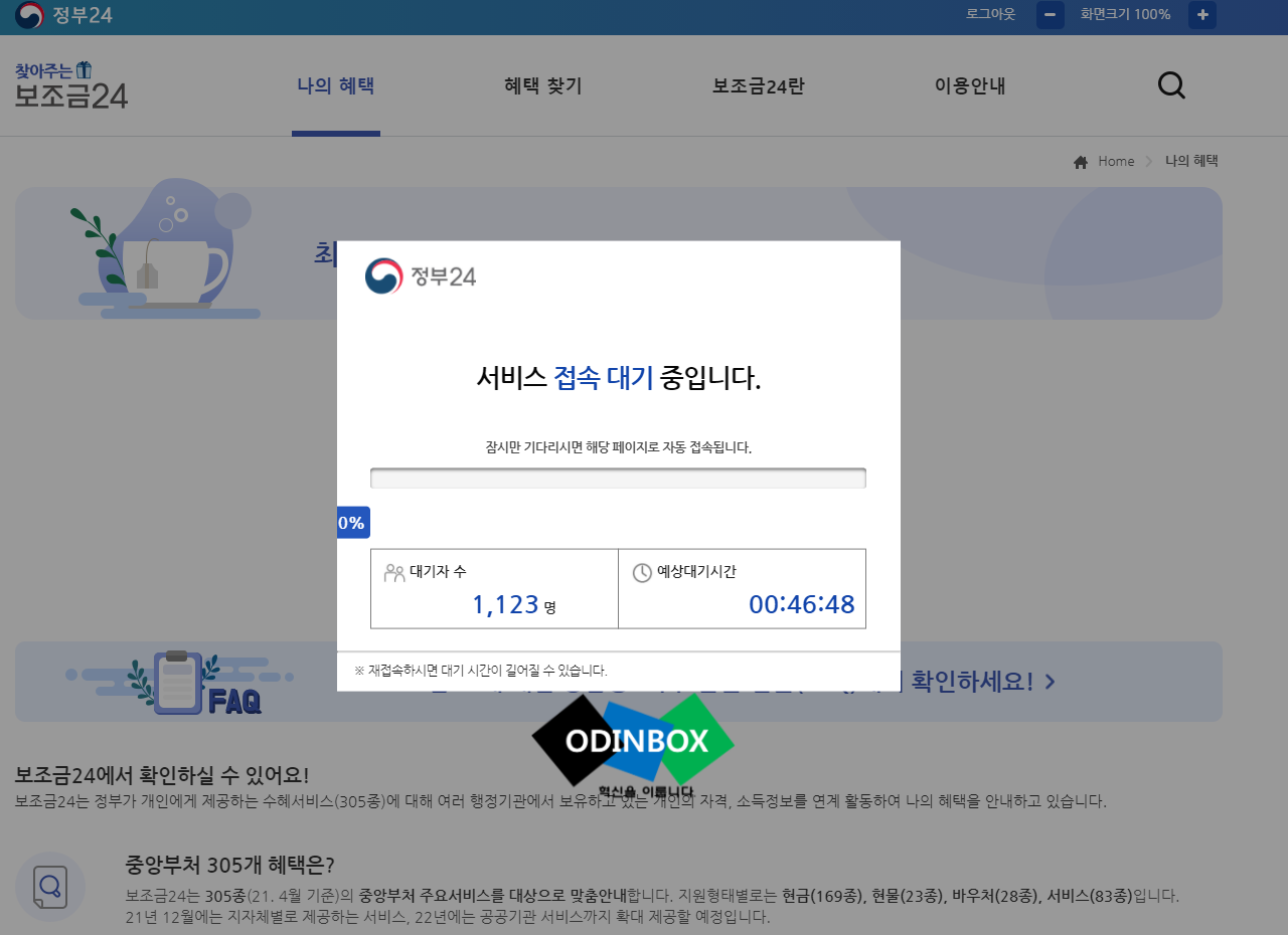 28일 접속을 하려니 접속 대기 1,123명이 접속 대기 중이라 기다림의 시간이 많이 걸렸습니다 그래도 서비스가 궁금하다 보니 기다렸습니다 예상 대기시간보다 10분 일찍 30분 만에 접속을 할 수 있었습니다.