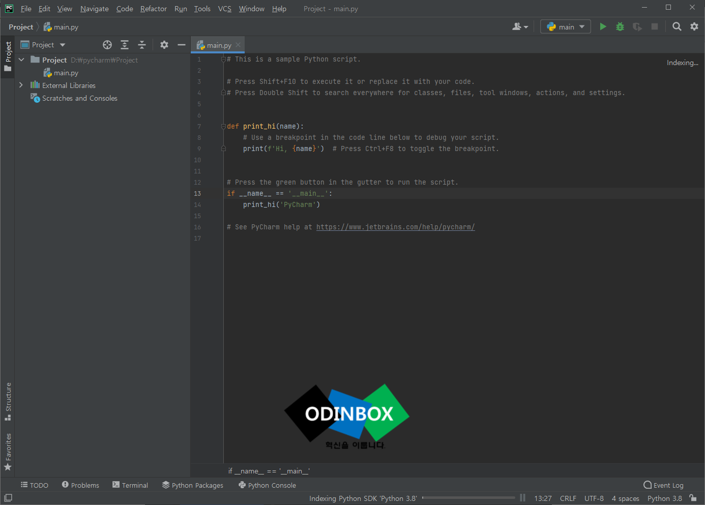 이제 다시 한번 실행을 하게 되면 정상적으로 출력이 되는 것을 확인을 할 수 있습니다. 혹시나 파이썬 Base Interpreter에서 아무런 버전도 선택이 되지 않는다면 파이썬을 따로 설치하는 것을 추천해드립니다.