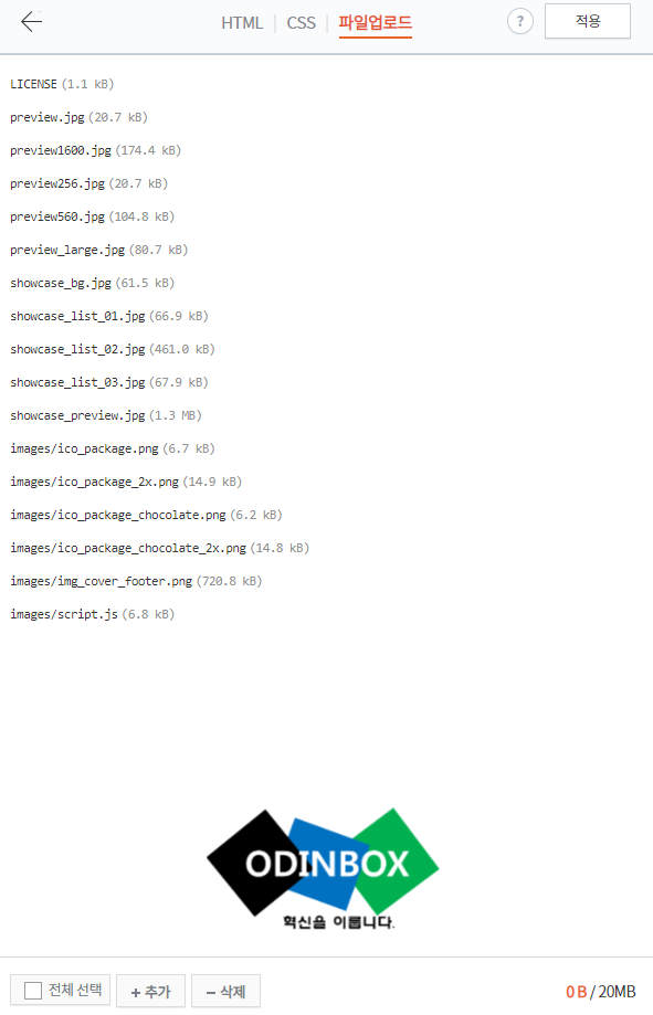 오른쪽 상단 파일업로드를 누르고 하단에 추가버튼을 누르고 방금 압출풀었던 파일(2개)을 선택하고 추가합니다.