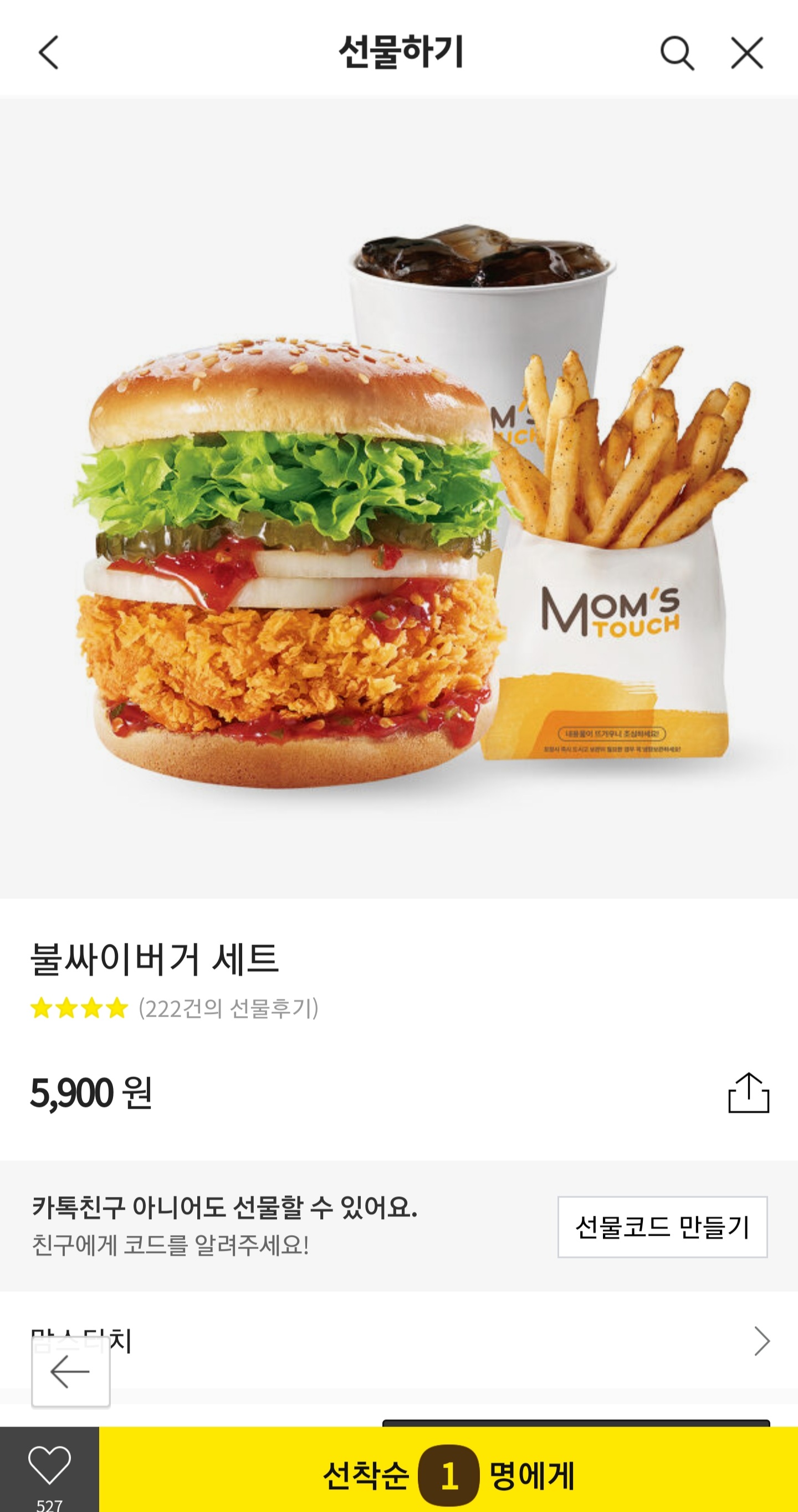 나타나는 메뉴 중 선물하기 버튼을 누릅니다.