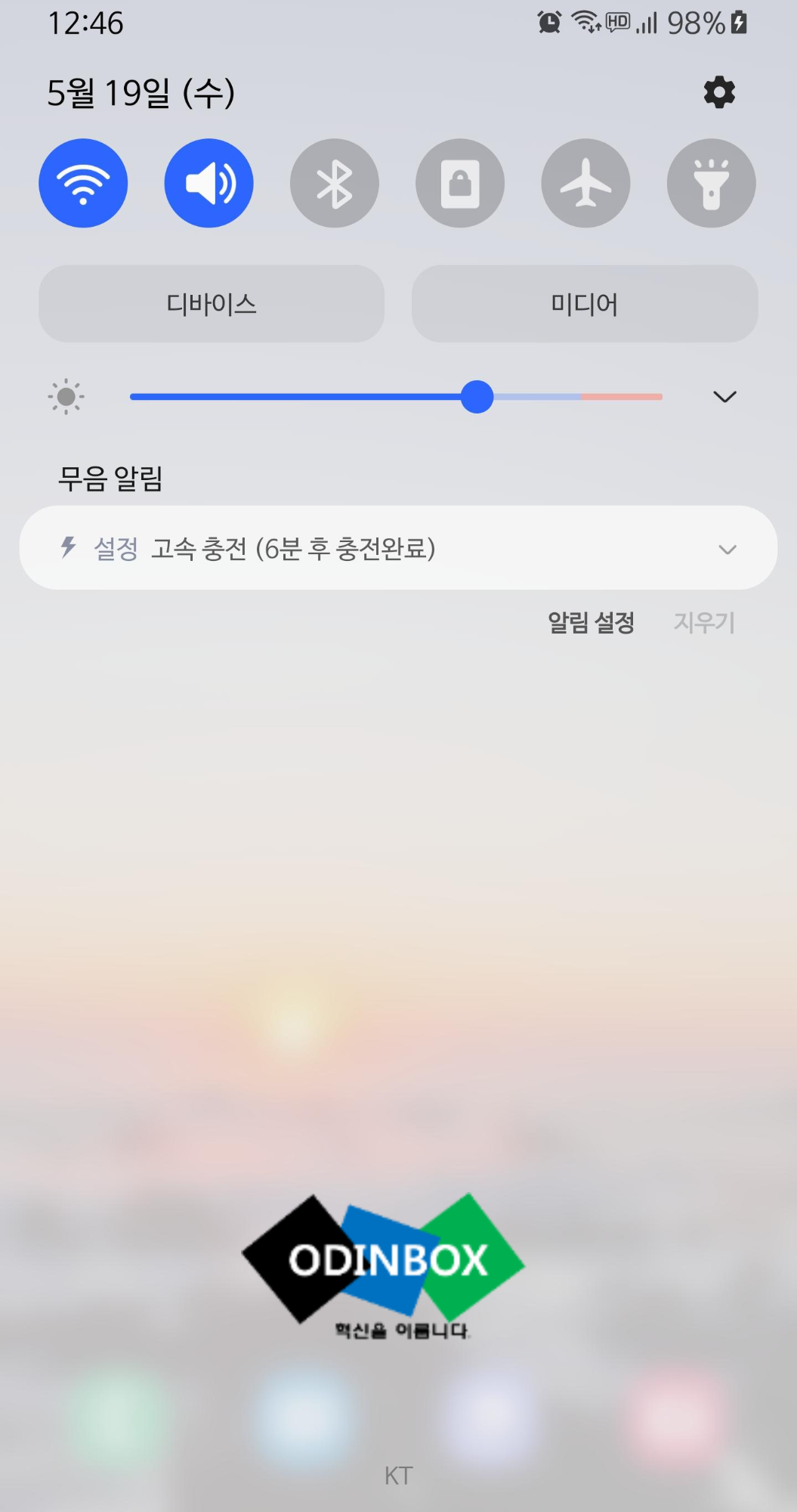 우선, 사용하고 있는 스마트폰에 상태 표시줄에서 상단 톱니바퀴 모양을 누릅니다.