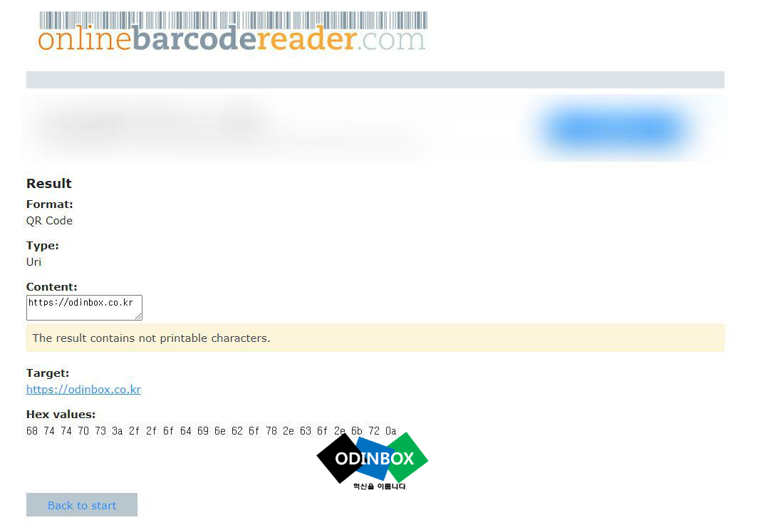 해당 결과화면으로 이동을 하는 것을 볼 수 있습니다 우선 Format(형태)를 볼 수 있고 종류와 함께 해당 QR코드의 내용과 함께 타겟된 URL과 Hex Values의 확인을 할 수 있습니다.