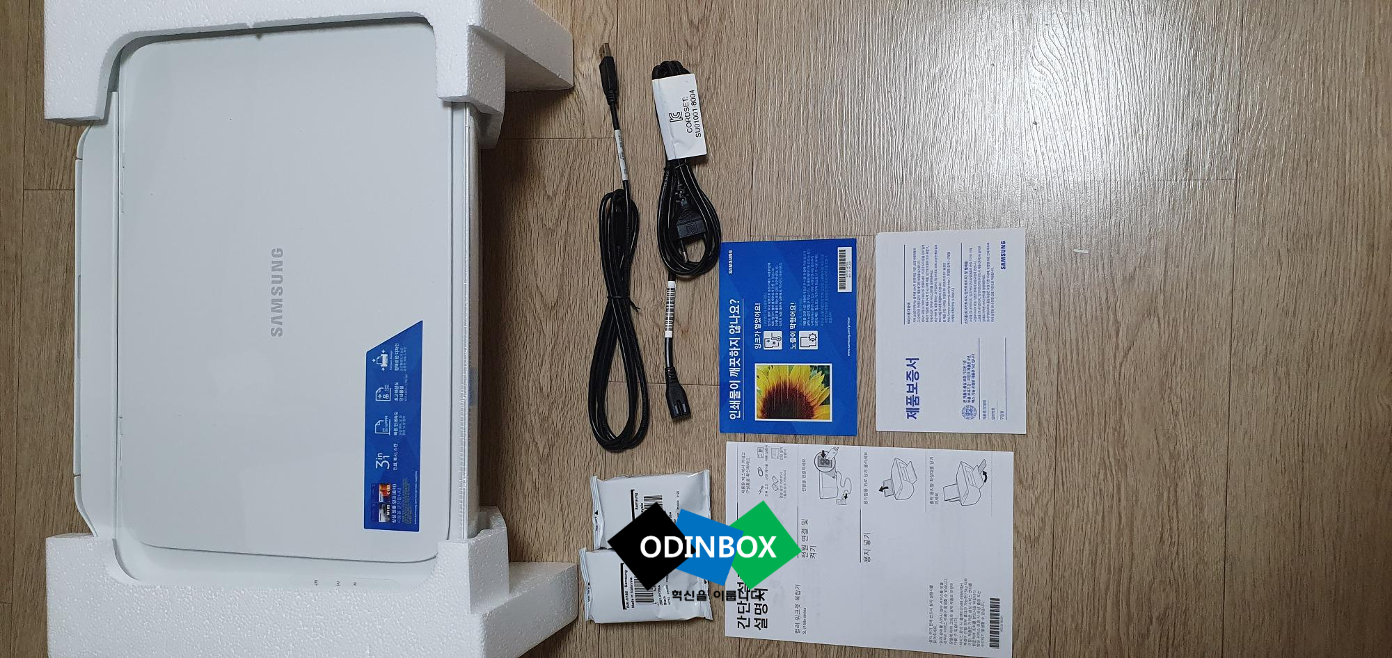 주문하고 2~3일 뒤 택배가 도착했습니다 참고로 저는 메이커스 주문 후 수령을 받게 되었는데 정말 당황스러웠던 것은 저렇게 배송이 왔습니다. 상품 박스에 송장 스티커를 붙이고 바로 보내는 것에 당황하긴 했습니다. 다행히 박스가 크게 파손이 없어 박스를 한번 봤습니다. 일단 깔끔한 제품 상자는 마음에 듭니다. 전면에는 제품명과 삼성로고와 함께 얖옆에 상품 설명 그리고 제품 코드 등이 있습니다. 참고로 삼성의 경우 에이치피[HP]에서 OEM 생산을 하고 있습니다.