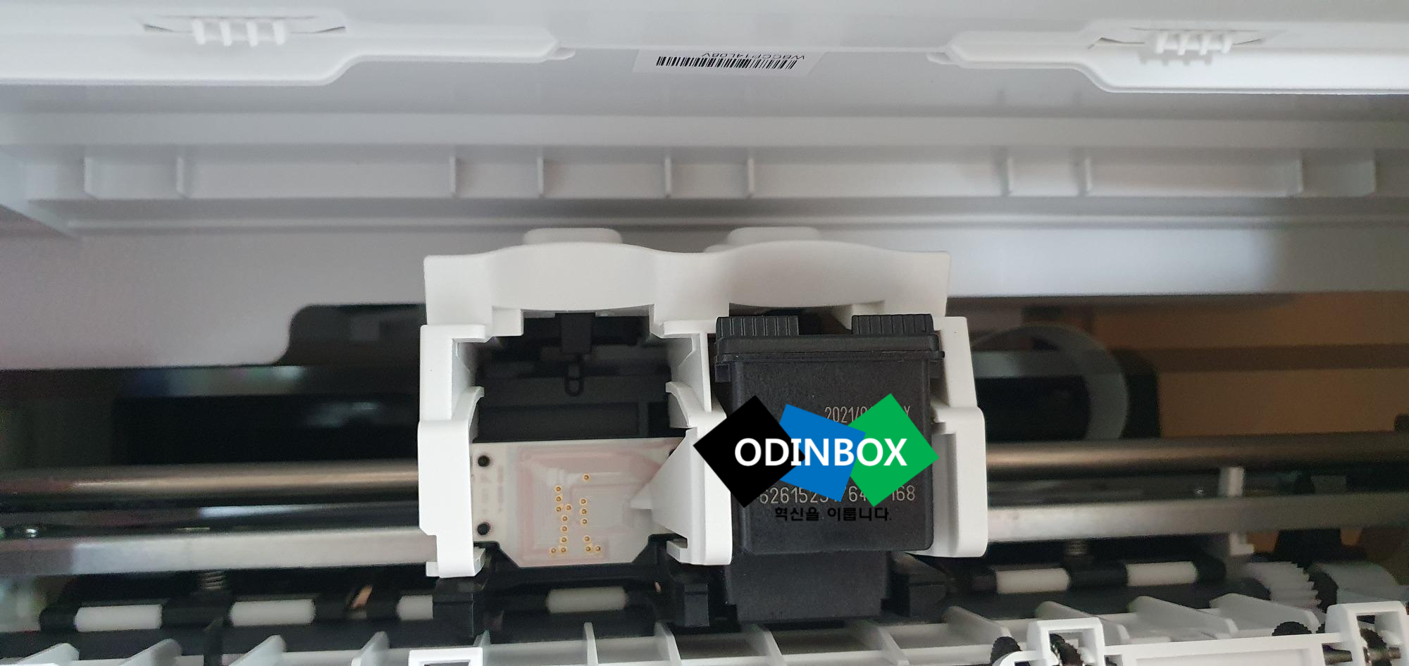 카트리지를 넣는 방법은 제품 전면부 A4 용지 나오는 곳을 열면 옆에 사진상 카트리지함을 옮기고 카트리지를 넣으시면 됩니다 여기서 주의해야 할 것은 카트리지를 잡을 때 하단부나 전기 흐르는 곳을 만지시면 안 됩니다 이 부분만 주의하시면 문제없이 교체할 수 있으며 카트리지를 넣고 원래 위치로 옮기면 정상적으로 프린터를 이용할 수 있습니다.