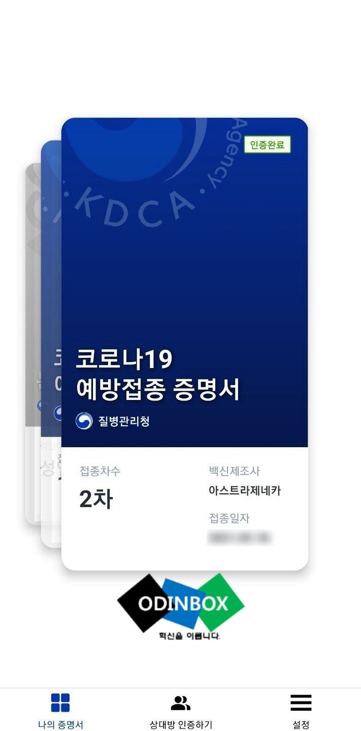 질병관리청과 (주)블록체인랩스에서 개발한 세계 최초 블록체인 기반의 코로나19 디지털 예방 접종 인증 앱입니다. 블록체인 기술을 이용해 디지털 증명서의 위변조를 불가능하게 하고, 증명