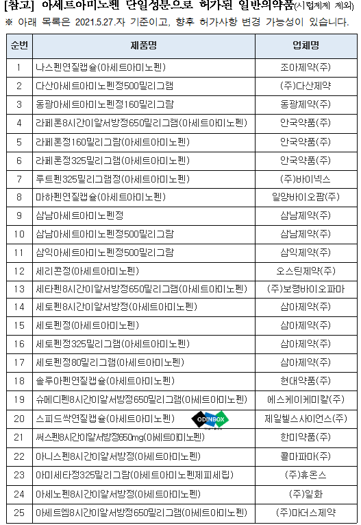 식품의약품안전처의 브리핑자료에 나온 내용으로 타이레놀을 꼭 안 먹어도 된다고 한다.