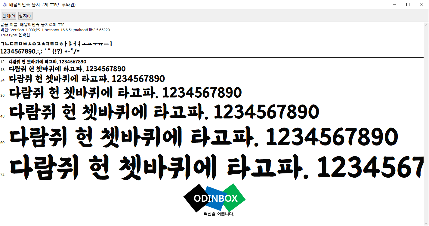 원하는 폰트를 클릭하면 아래와 같이 상세하게 볼 수 있도록 지원을 하고 있습니다.