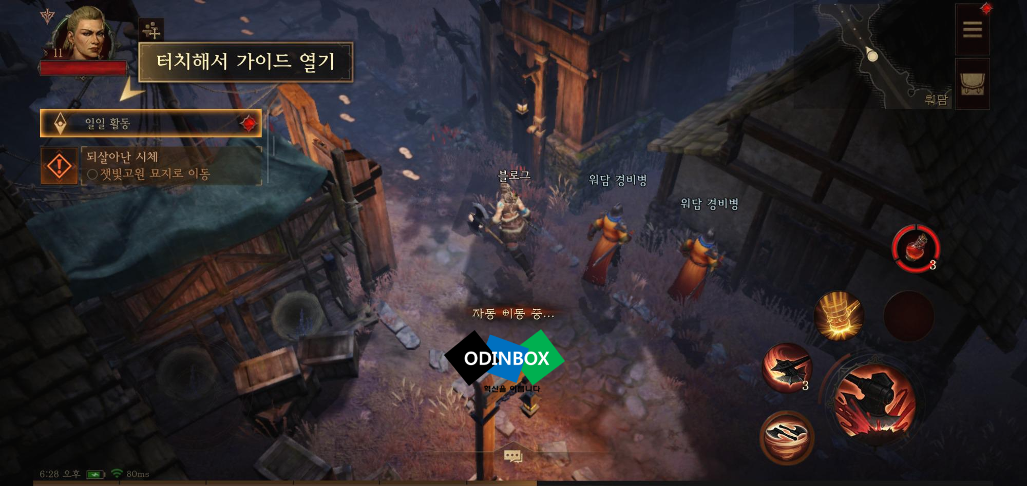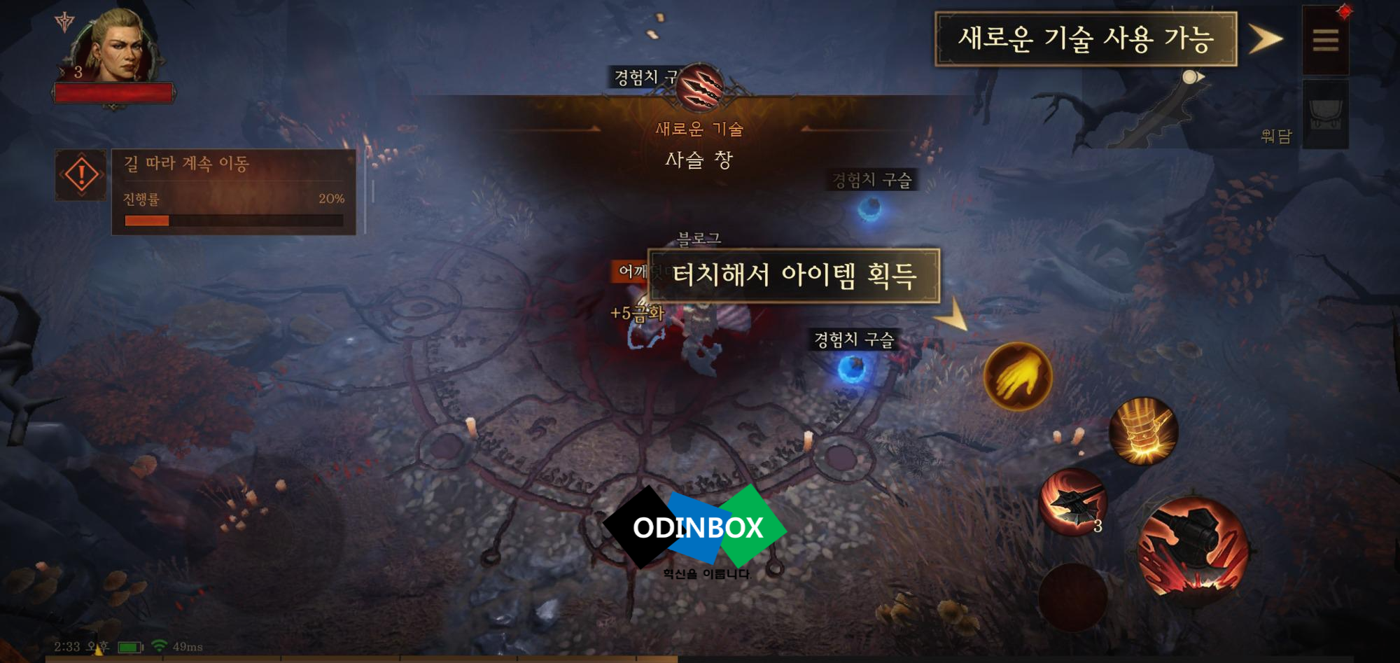 게임을 시작하면 조작법과 함께 가이드를 친절하게 설명을 해주는 게 나오긴 합니다. 그리고 또한 디아블로는 스토리 또한 중요한데 스토리의 모습도 중간중간 나오면서 게임 플레이에 재미를 더해줍니다. 게임을 진행을 하면서 과금 요소는 아직까진 크게 없으며 모바일이라는 생태계에 맞게 가이드가 어느 정도 제공이 되니 쉽게 쉽게 할 수 있다는 장점이 있긴 합니다만 사실 저의 경우 디아블로는 컴퓨터(PC)로 하는 게 제일 좋아하긴 합니다만 직접 플레이해보니 나쁘진 않습니다. 플레이를 하면서 게임을 하는 분들도 꽤 보였습니다.
