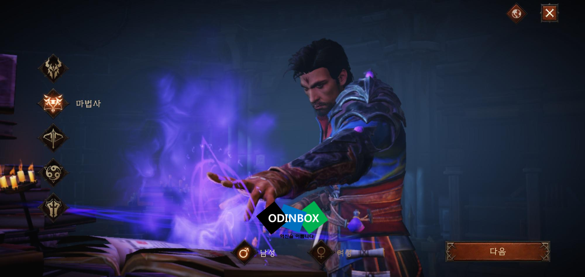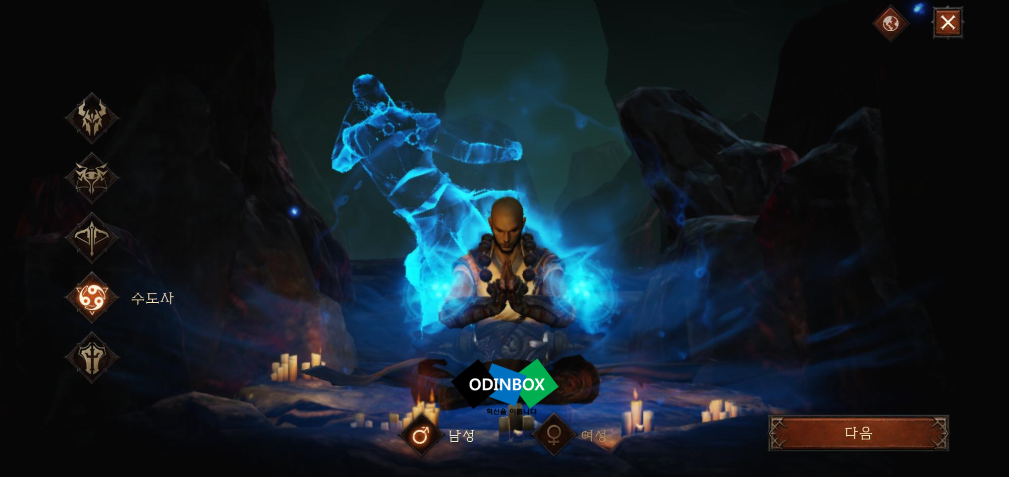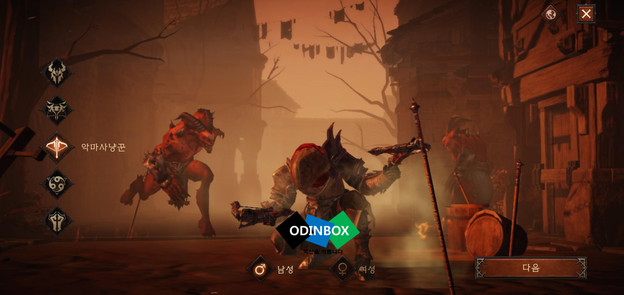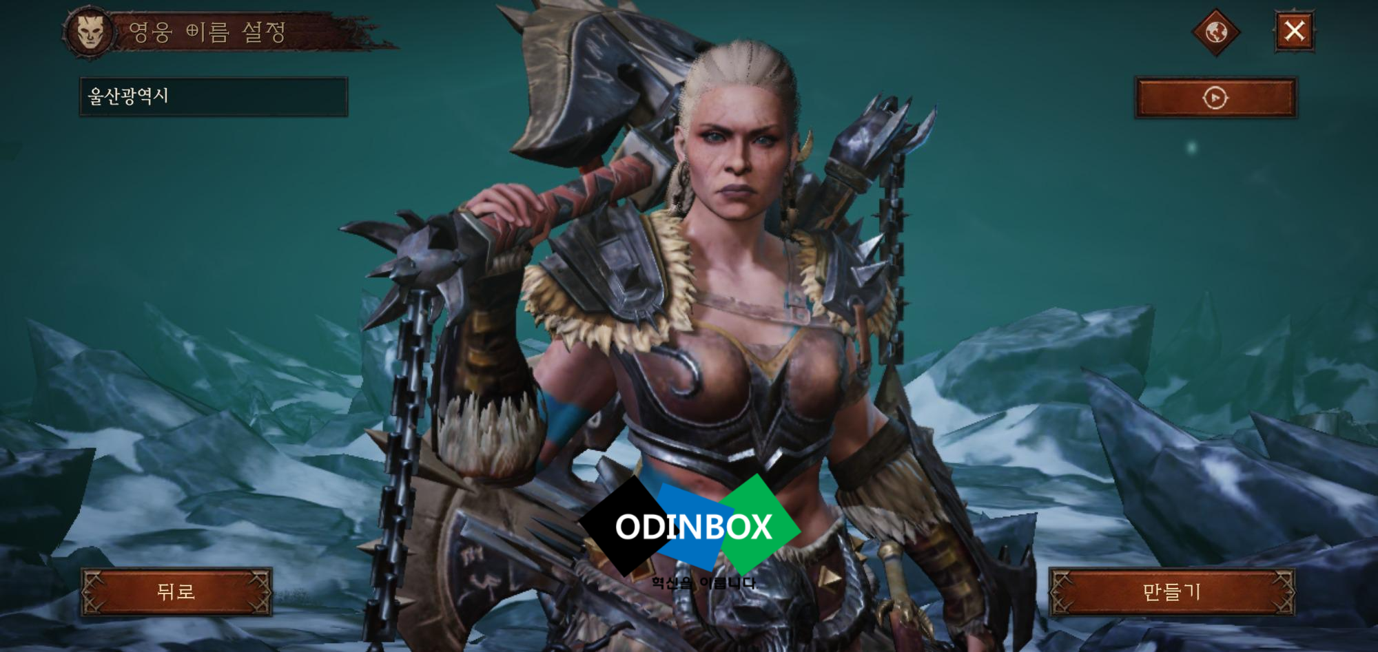 캐릭터가 없는 경우 생성할 수 있습니다. 이모탈의 경우 직업은 야만용사, 마법사, 악마사냥꾼, 수도사, 성전사가 있으며 성별을 과 함께 외형을 설정하고 이름을 설정하고 만들기를 누르면 됩니다.