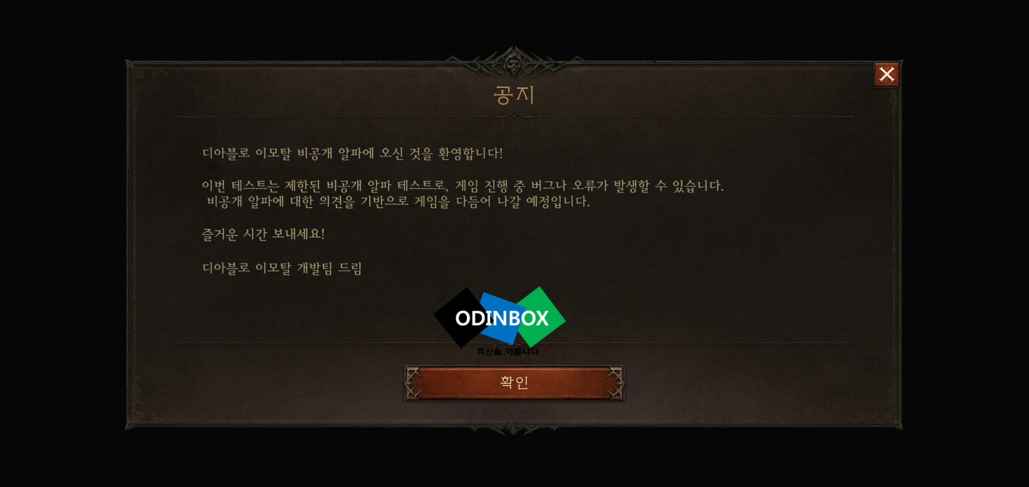첫 실행화면에 보이는 모습입니다. 블리자드 로고가 뜰 때는 약간의 기대와 함께 오~라는 기분과 함께 넷이즈 로고가 뜨자마자 흐음.....이라는 반응과 함께 바라봅니다. 그리고 블리자드와 넷이즈의 로고가 같이 나오면 수긍 아닌 수긍과 함께 기대가 줄어드는 마법이 생기긴 합니다. 그리고 나오는 알림창과 함께 팝업창들은 역시 모바일이라는 느낌과 함께 디아블로가 모바일로 할 수 있다는 게 기대감?을 가져보고 들어가 보도록 하겠습니다.
