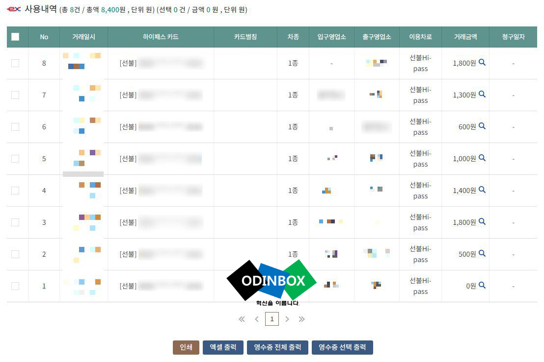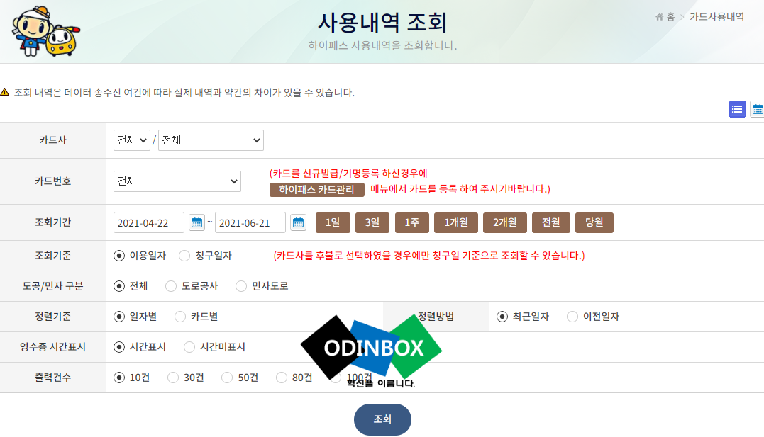 통행료 사용내역 조회