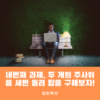 이번 시간에는 for문을 이용하여, 두개의 주사위를 세번 돌려 합을 구하는 과제를 주셔서 한번 만들어보았다.