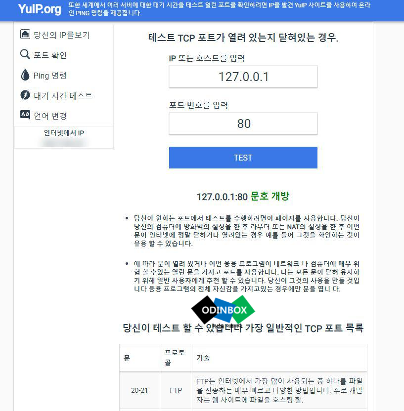 정말 간단하고 심플합니다. 영문으로 되어있다고 걱정할 필요가 없는 것 같습니다. 조금만 보면 자신의 아이피 주소를 확인할 수 있는 곳이 있고 Open Port finder 부분에 자신의 아이피와 함께 포트 번호를 입력 후 Check를 누르면 해당 포트가 열려있으면 Open이라고 출력이 됩니다. 오른쪽 일부 포트들이 설명이 되어있고 왼쪽 부분에는 아이피의 위치를 알 수 있는 서비스가 제공이 되고 있긴 한데 사실 저 부분은 정확한 건 아니라 그냥 참고 정도만 하면 될 것 같습니다.