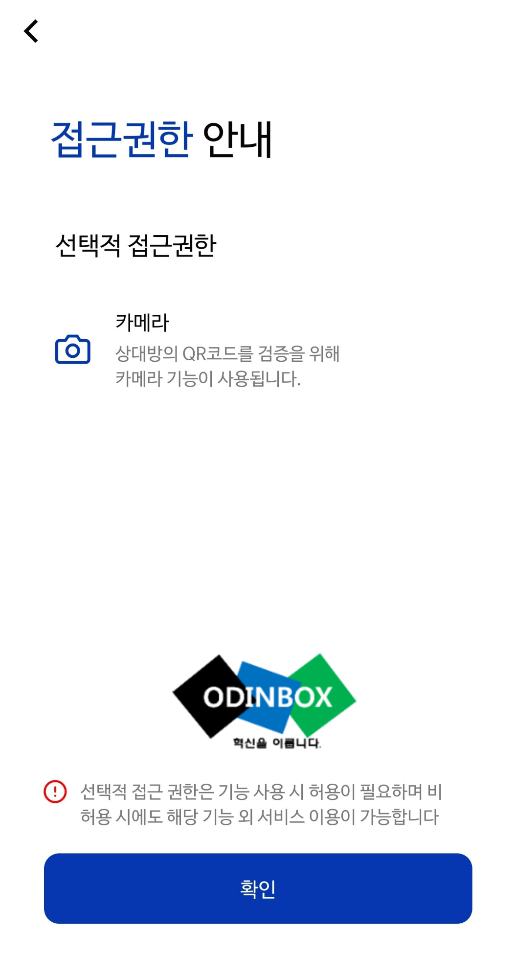 처음 실행 시 언어를 선택하는 화면이 나옵니다. 다른 언어도 조만간 지원을 한다고 하는데 저는 한국사람이닌깐 한국어 선택 후 확인을 누르면 간단한 설명이 있습니다. 건너뛰기나 다음을 누르면 접근권한 안내가 나옵니다. COOV는 QR코드 인식을 위해 카메라 권한이 필요합니다. 확인을 누릅니다. 그리고 정보 수집 약관에 동의 후 확인을 누르면 COOV 첫 설정이 완료됩니다.