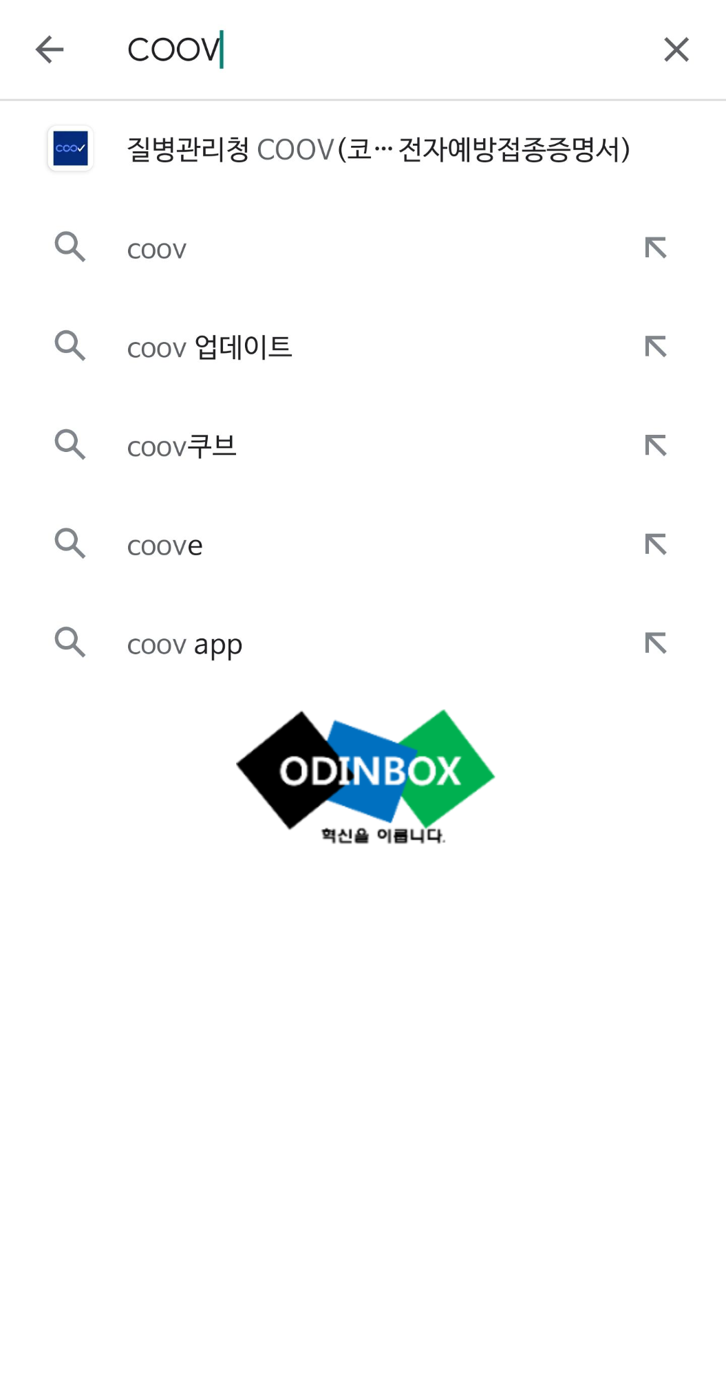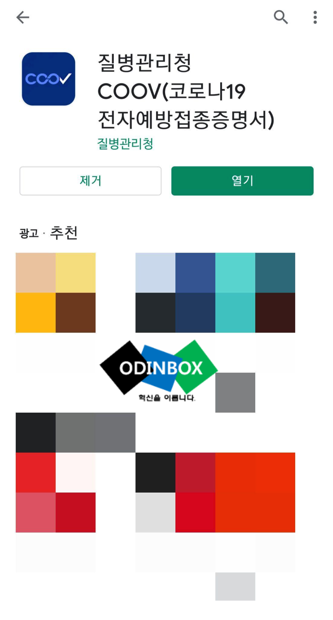 예를 들어 플레이스토어의 경우 검색창에 COOV 검색 후 사진상 보이는 어플을 눌러 설치를 누르면 정상적으로 다운로드 및 설치가 진행이 됩니다.