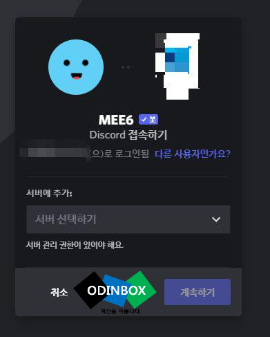 디스코드 로그인을 진행한 후 추가하려는 채널을 '서버 선택하기'에서 선택을 한 후 계속하기를 누르면 자신이 원하는 봇이 정상적으로 추가되는 것을 확인할 수 있습니다.
