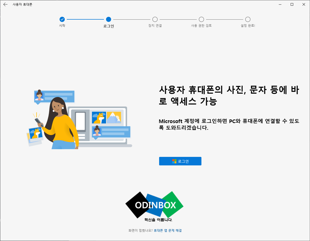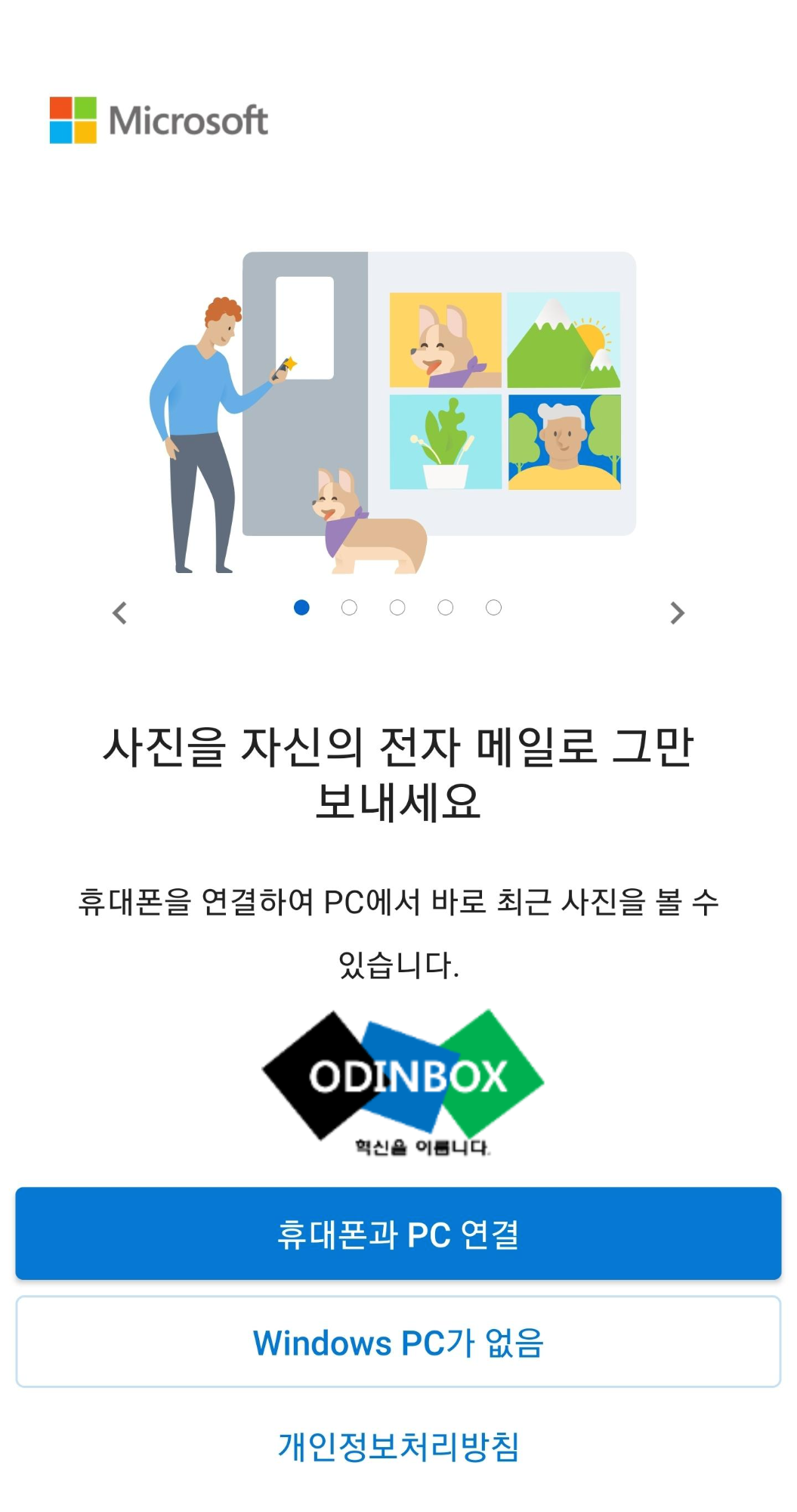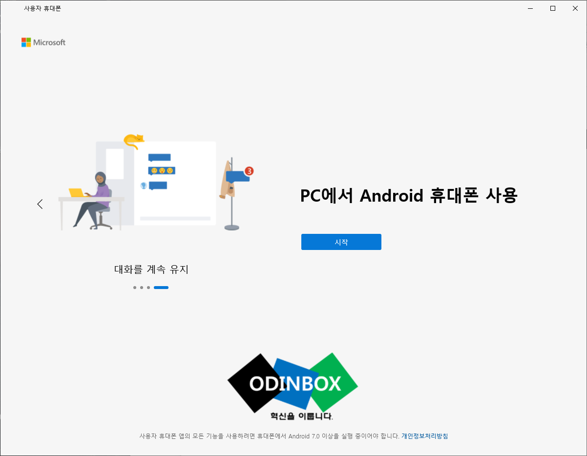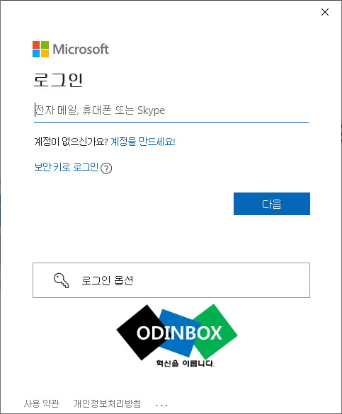 사용자 휴대폰이 실행되면 화면에서 시작을 누른 후 마이크로소프트 계정을 로그인합니다. 혹시나 계정이 없으신 분들은 간단하게 자신이 원래 쓰던 이메일 인증 후 로그인을 하시면 됩니다.