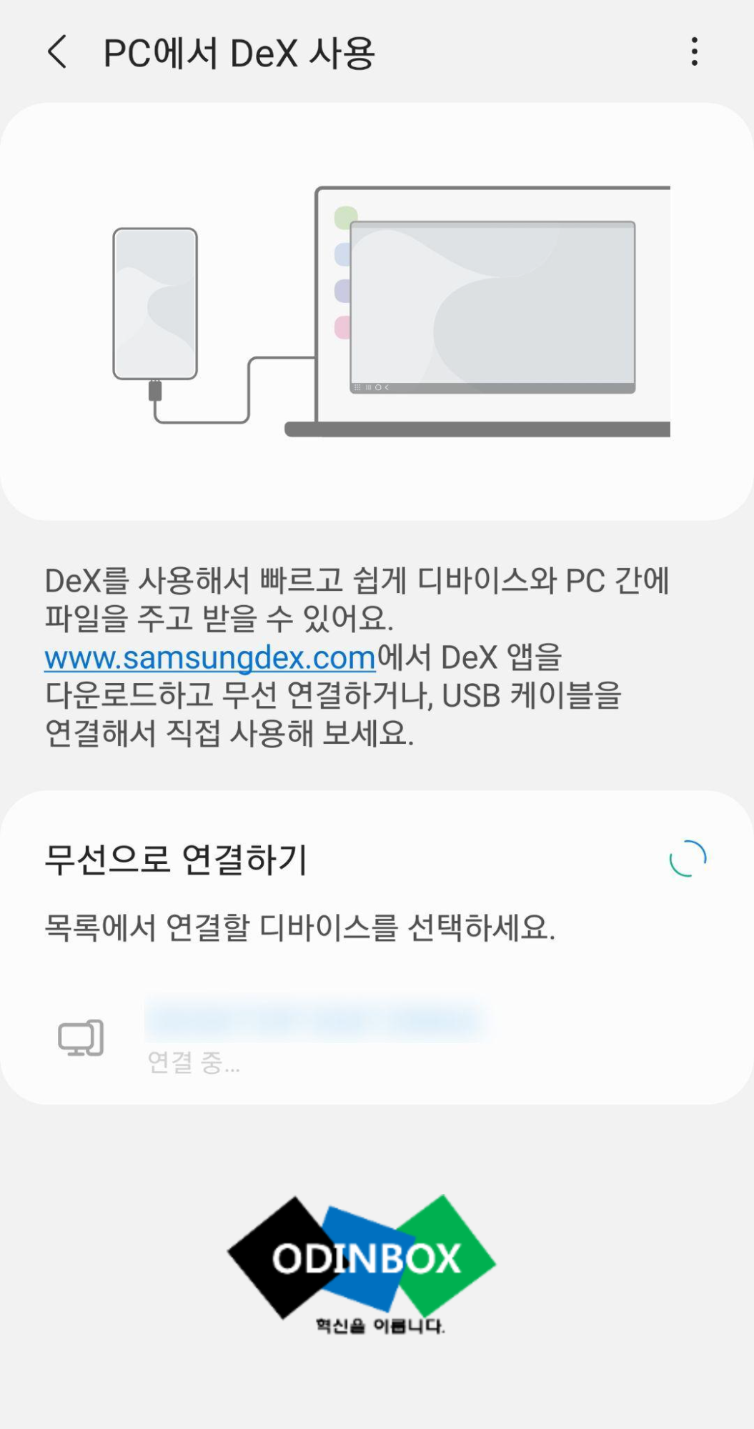 삼성 DeX를 이용하여 연결을 하려면 우선, PC에 삼성 DeX 프로그램이 설치가 되어있어야 합니다. DeX 프로그램 설치 방법은 홈페이지[#]에 들어가면 설치할 수 있습니다. 설치를 진행하시면 됩니다. 설치가 완료되면 아래의 방법대로 하시면 됩니다.