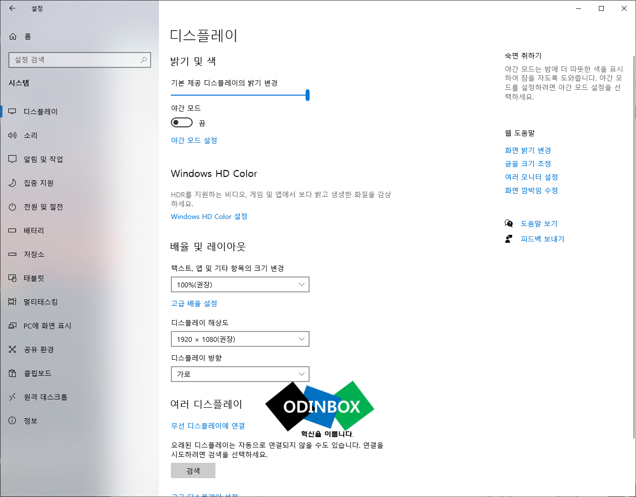 설치가 완료가 되면 다시 PC에 화면 표시 설정으로 가시면 아까 비활성화된 상태에서 설정을 할 수 있도록 활성화된 모습을 볼 수 있습니다.