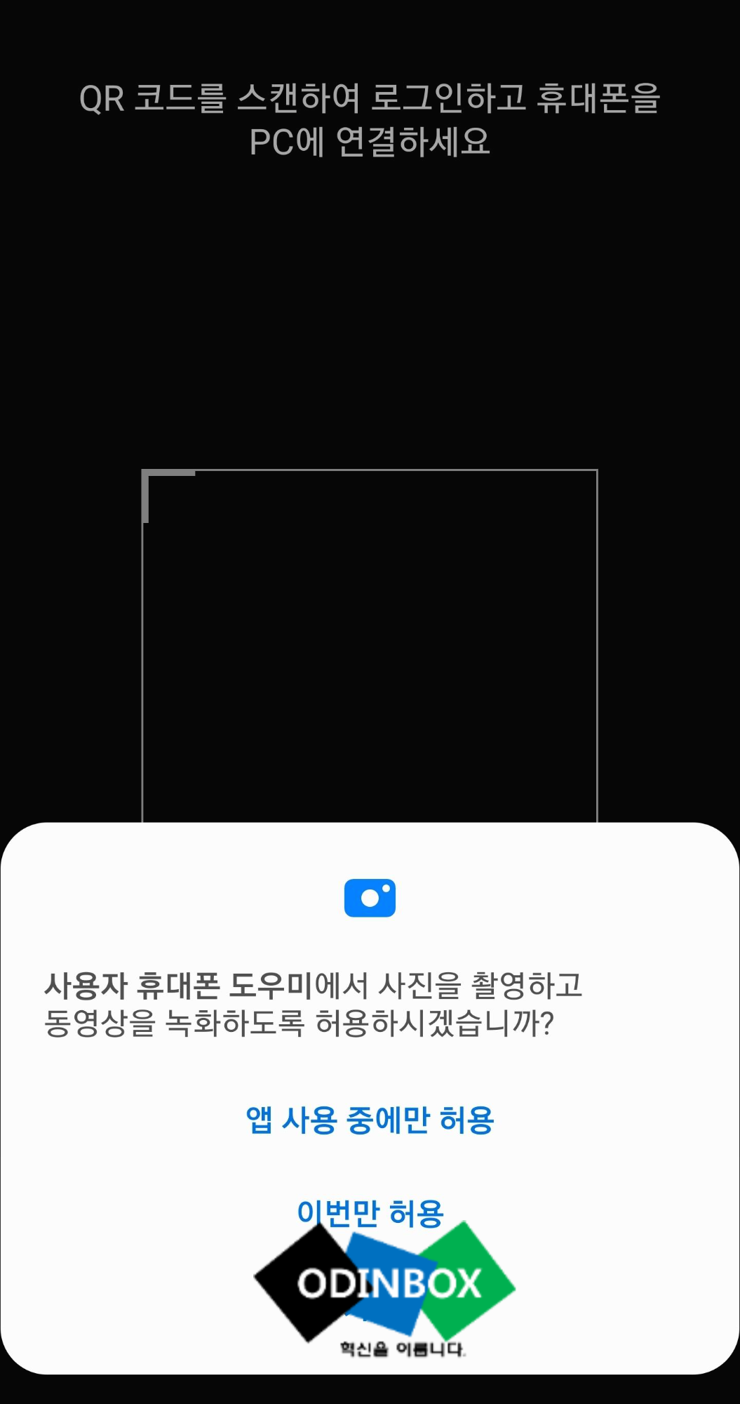그리고 잠시만 기다리게 되면 조그마한 창과 함께 QR코드가 나오게 됩니다. 이렇게 하면 PC 설정은 끝났습니다. 스마트폰에서 연결을 하면 정상적으로 연결이 됩니다.