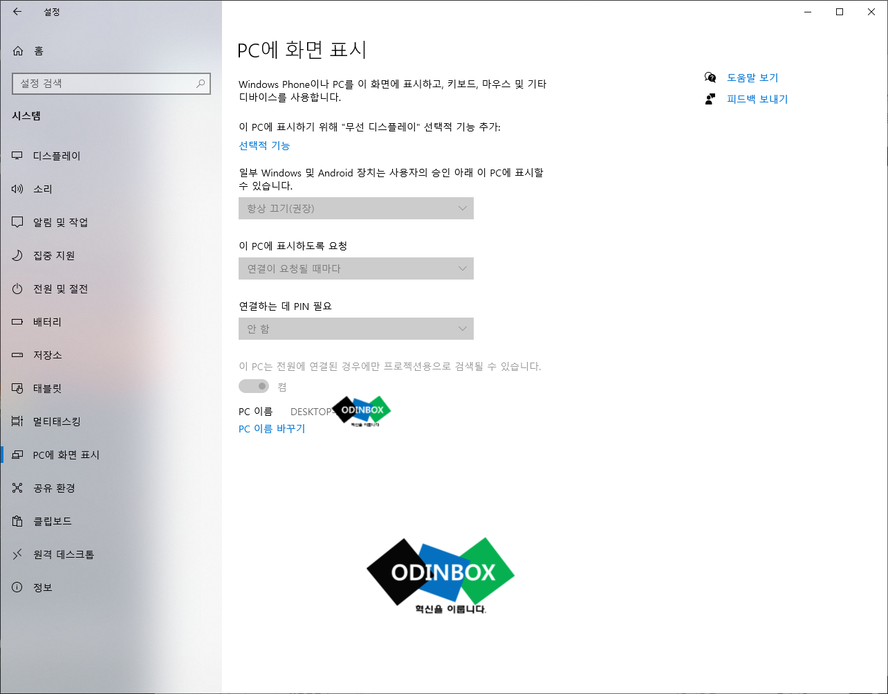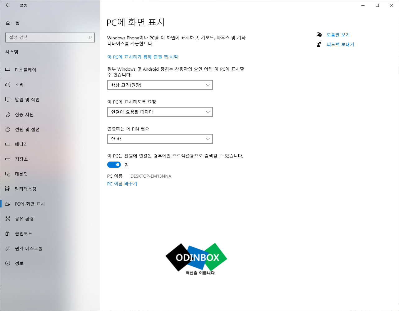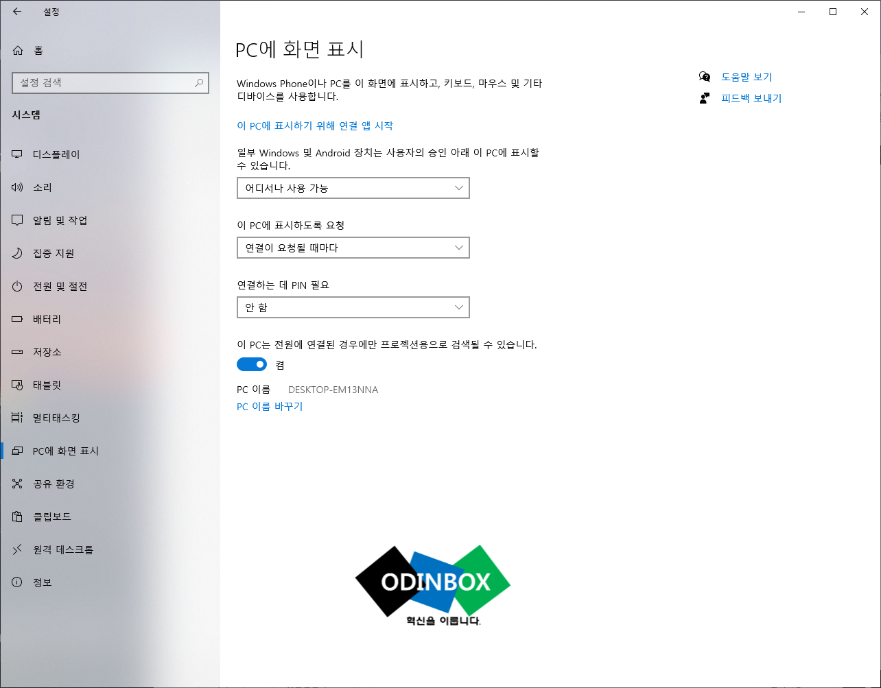 그리고, 왼쪽 메뉴에서 PC에 화면 표시를 누릅니다.