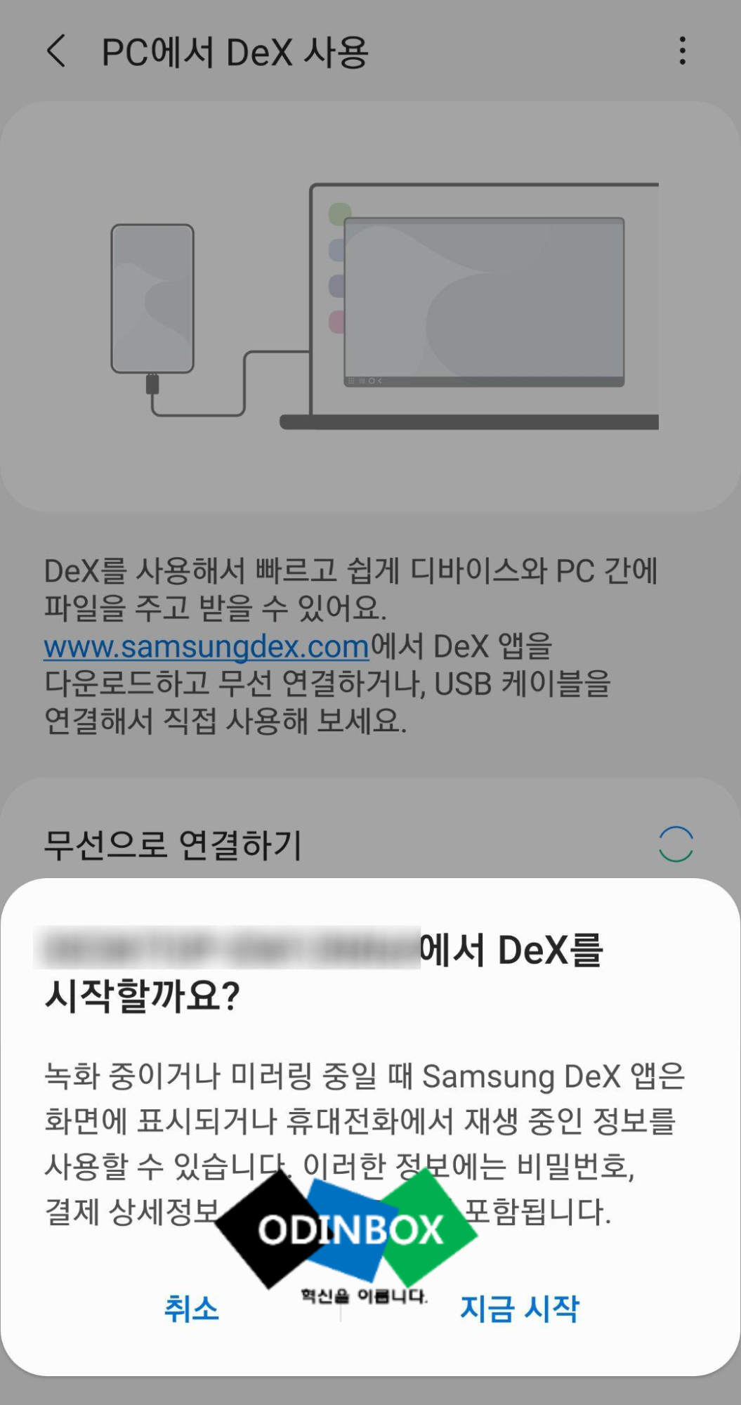 상태 표시줄을 내린 후 설정 중 DeX를 누른 후 PC에서 DeX 사용을 누른 후 잠시 기다리면 자신의 PC가 목록에 나오게 됩니다. 해당 목록에 나타나지 않는다면 케이블을 이용하여 연결을 하면 됩니다. 그리고 자신의 PC를 누르면 지금 시작을 누르면 잠시 후 연결이 완료가 됩니다.