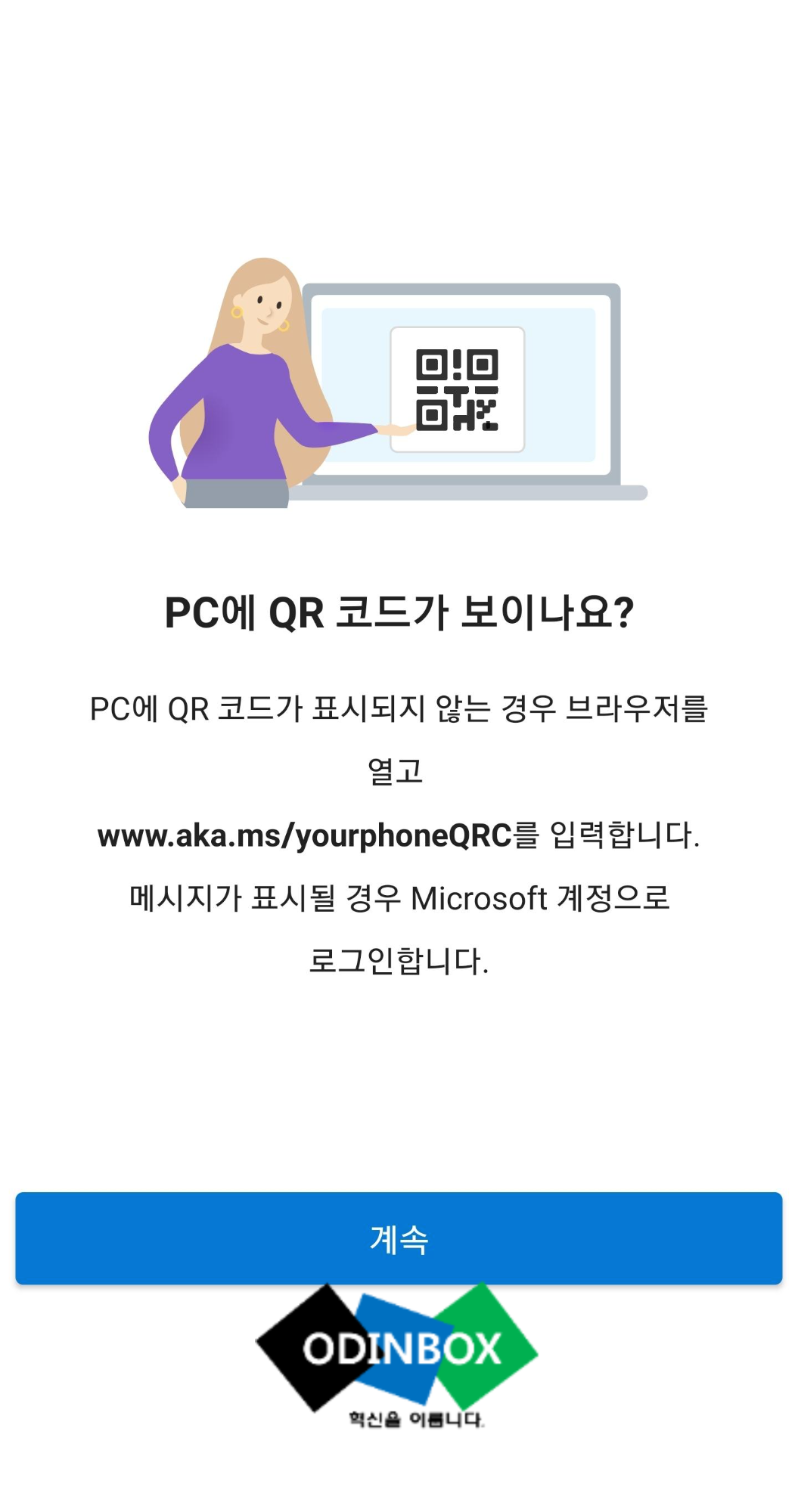 해당 화면에서 사용자 휴대폰 도우미 - Windows와 연결 앱이 준비되었습니다. 를 선택하고 하단에 QR 코드를 사용하여 연결을 누릅니다.