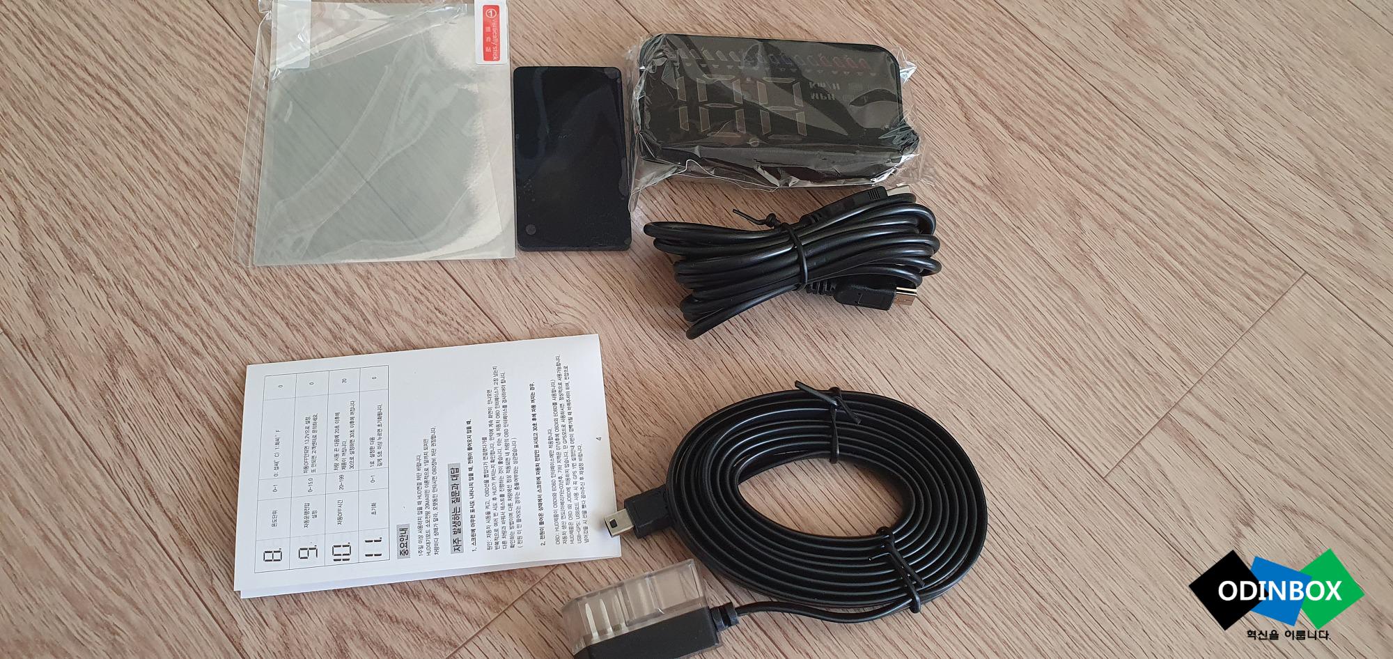 구성품은 HUD 본체, 논슬립패드, ODB 케이블, 일반 케이블, 필름, 설명서로 구성이 되어있습니다.