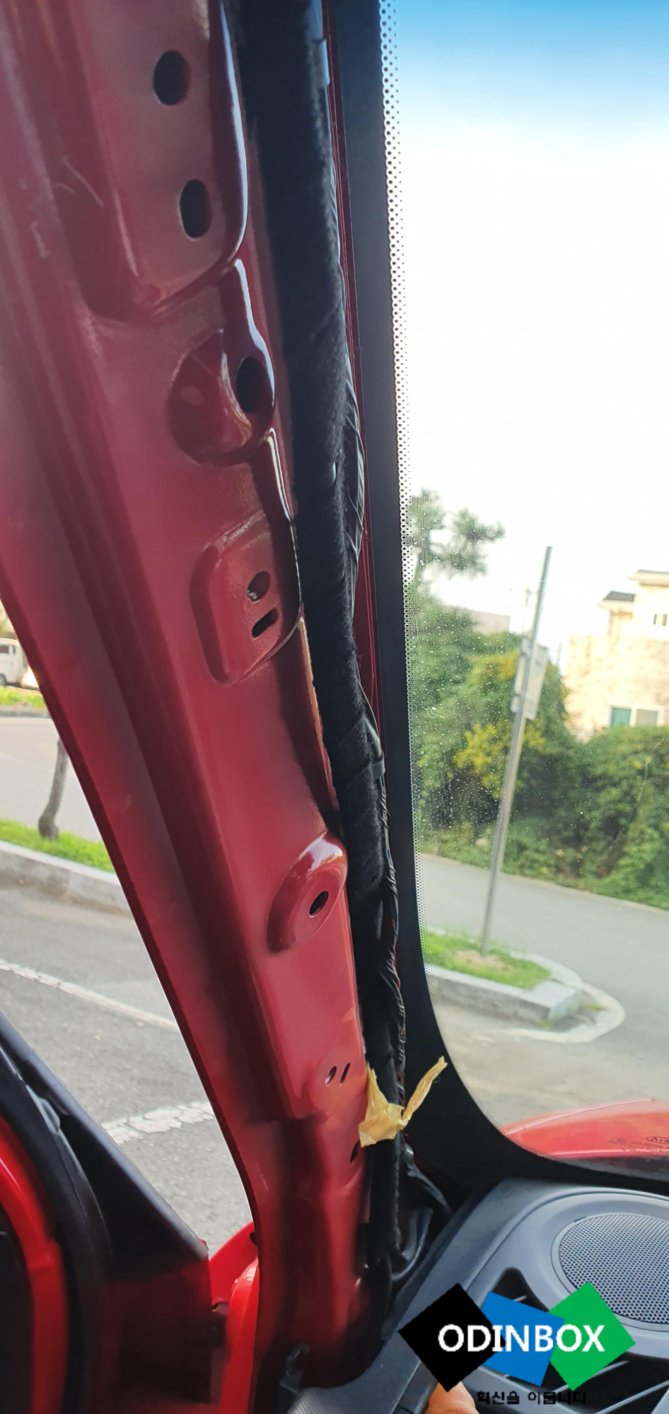 우선, 장착을 하려면 ODB를 연결을 해야 합니다. GPS로 연결을 해도 되지만 터널이나 지하의 경우 GPS가 연결이 안되어져있으면 정확한 속도가 나오질않아 불편하여 ODB를 연결하기 위해 장착하려는 차량에는 운전석 왼쪽 하단 부분 퓨즈박스 있는 쪽 밑에 위치하고 있습니다. 일부 다른 차종의 경우 위치가 다를 수 있으니 사전에 확인을 해야합니다. 선을 연결을 하고 깔끔한 선정리를 하기 위해 A필러를 탈거하여 선 정리를 해주려고 합니다. 해당 차량의 경우 A필러를 보면 동그란 부분을 빼면 나사가 있습니다. 나사를 드라이버로 풀고 난 뒤 A필러를 탈거하면 됩니다. 그리고 고무 부분을 손으로 빼면 됩니다. 그리고 선을 다른 선과 간선이 안되도록 정리합니다. 재조립은 분해의 역순으로 하시면 됩니다. 재조립하기 전 전원이 제대로 들어오는지 확인은 필수입니다!