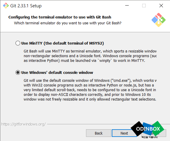 필요한 구성요소를 선택할 수 있습니다. 원하는 구성요소를 선택을 한 후 Next를 누르고 git의 기본 에디터(Editor)를 선택 할 수 있습니다. VScode를 이용하려고 저의 경우 use Visual Studio Code as Git's default ediotr를 선택하였습니다. 그 후 시작 메뉴 설정에서 기본으로 사용을 하여 바로 Next를 누릅니다.