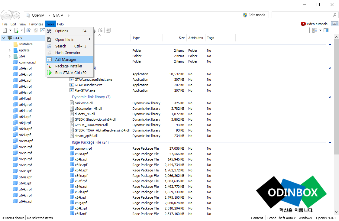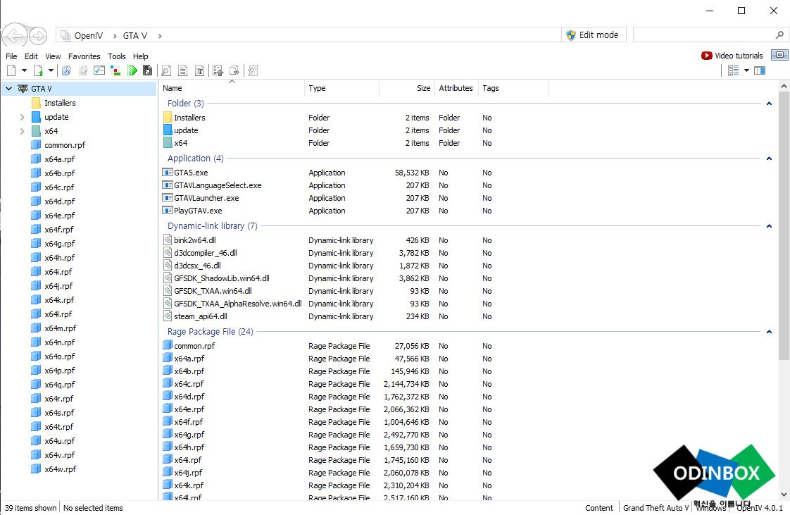 폴더를 실행을 합니다. 그 후 OpenVI로 생성된 mods 폴더에 사용을 하고 싶은 파일들을 이동합니다. GTA5 설치 폴더에 있는 update, x64, x64.rpf에 있는 파일들을 GTA5 설치 폴더에 mods라는 폴더 안에 그대로 복사하여 넣으시면 됩니다. 용량이 생각보다 꽤 크기 때문에 시간이 조금 걸립니다.