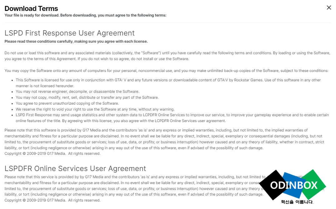 설치를 하기 위해 우선 LSPDFR 사이트[#]를 접속합니다. 접속을 하시면 아래 파란색 버튼으로 Get LSPDFR for GTV V를 누릅니다. 그리고, 똑같이 파란색 버튼으로 되어있는 Download LSPDFR 0.4.9를 누릅니다. 해당 버튼을 누르면 LSPDFR 관련한 설명과 함께 다운로드할 수 있는 버튼이 있습니다. 상단 오른쪽 부분에 Download this file을 누르고 다운로드 약관 Agree & Download를 누르고 첫 번째 lspdfr_0.4.9_7874.exe 옆에 Download를 누르면 저장하게 될 위치를 선택하고 설치가 완료되면 해당 파일을 실행합니다. 실행을 하고 Next>를 누르고 설치 위치를 설정할 수 있는데 저의 경우 일단 기본적으로 설치되는 것을 선택을 했습니다. 그리고 Next>를 누르고 마지막으로 체크가 안되어져 있으면 체크하고 Finish를 누르게 되면 LSPDFR이 실행이 됩니다. 그리고 Next를 누르고 Show license를 누르면 RAGE Plugin을 동의를 할 수 있는 창이 실행이 되고 초록색 버튼을 선택하면 됩니다. 그리고 LSPDFR 설치를 한 폴더를 들어가 전부 선택을 하고 GTA5를 폴더에 그대로 복사 & 붙여 넣기를 하시고 RAGEPluginHook.exe를 실행을 하고 톱니바퀴를 누른 후 Plugins를 Load these plugins on startup에서 전부 선택하고 Advanced settings를 눌러 Enable Custom Backgrounds for Loading Screen을 선택한 후 하단 부분에 Save and Launch를 누르게 되면 게임이 실행이 됩니다. 그리고 잠시만 기다리면 게임 내에서 콘솔 창을 실행하고 ReloadAllplugins를 입력한 후 실행하면 모든 플러그인을 다시 시작하여 적용이 됩니다. 그리고 맵을 보면 경찰 마크가 있는데 자신이 있는 곳과 가까운 곳으로 이동하여 입구에서 E를 누르게 되면 경찰 모드가 실행이 되고 캐릭터를 설정하고 차량 설정을 하면 경찰 모드를 즐길 수 있습니다.