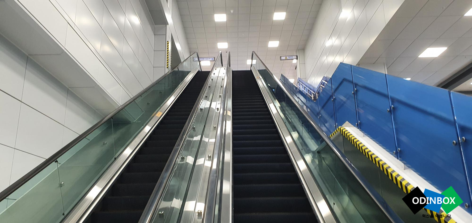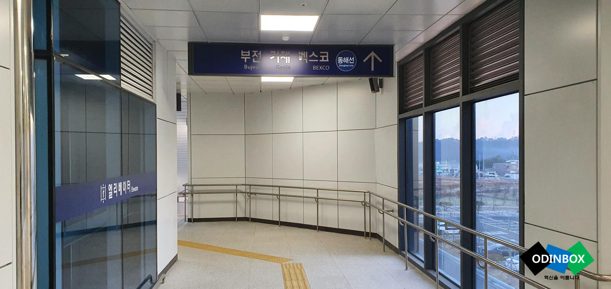 긴 통로를 지나면 탈 수 있는 곳으로 연결되는 계단과 연결이 됩니다. 각각 표시되어 있는 [부전 방면]으로 갈 수 있는 곳과 [태화강 방면]으로 갈 수 있는 계단이 있고 엘리베이터와 에스컬레이터가 있어 몸이 불편하거나 노인분들이 이용할 수 있도록 만들어져 있습니다.