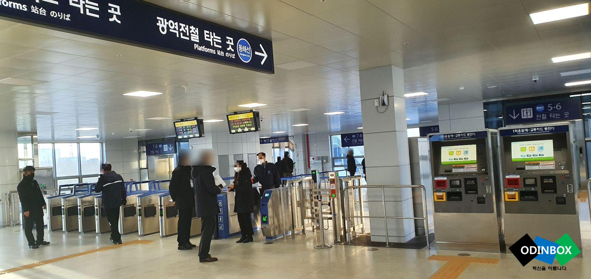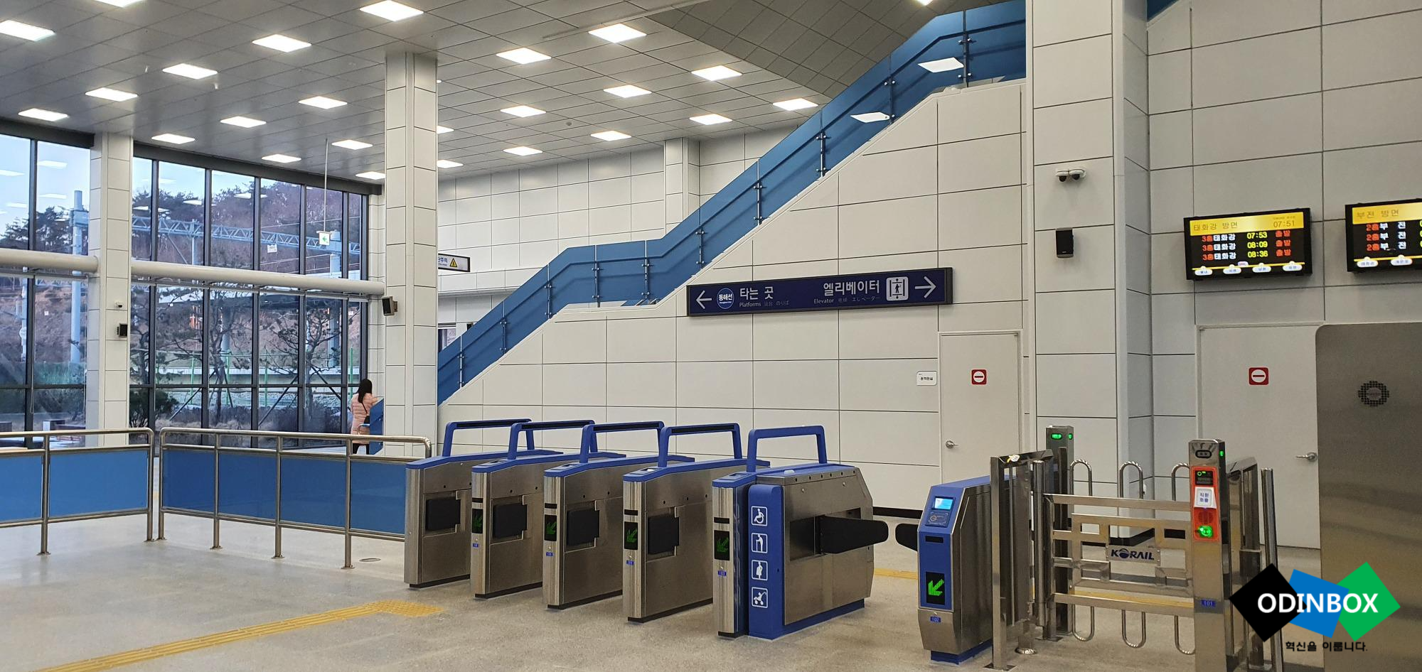망양역 입구로 들어왔습니다. 입구 들어오고 바로 옆으로 표를 뽑을 수 있는 승차권 발매기가 있습니다. 또한 망양역의 경우 규모 자체는 작다 보니 앉을 수 있는 공간이 없고 편의시설은 화장실 등이 있고 바로 마주 편으로 보면 역무실이 있습니다. 또한 역 안 전광판이 있어 열차가 언제 도착하는지 바로 알 수 있고 개찰구를 지나가면 바로 승차할 수 있는 곳으로 이동할 수 있는 에스컬레이터가 있습니다.